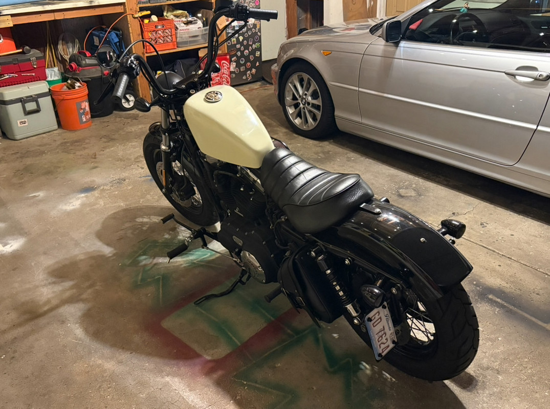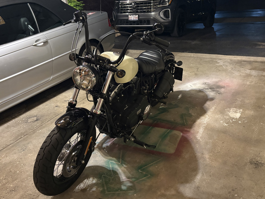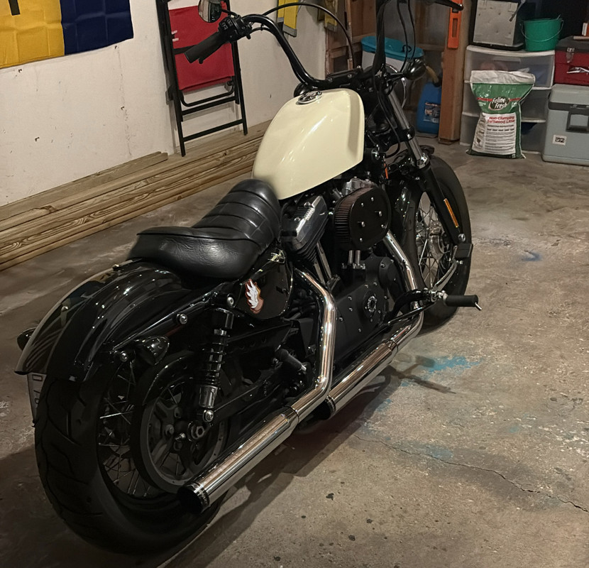 Excellent condition 48. Just a few things done, can very easily go back to stock. Rineharts, 10" bars, fwd controls, coil relocation, spedo relocation, old school bulbs, hotrod headlight. I have a Shinko 777 that goes with it too not installed.