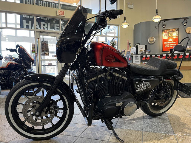 2014 Harley-Davidson® Sportster® Iron 883™This blacked-out bruiser is a raw, aggressive throwback. No chrome, no apologies—just an authentic ride.The 2014 Harley-Davidson® Sportster® Iron 833™ model XL883N is an amazing way to get started with a custom bobber. From the authentic Harley® 883 cc engine to the chopped fenders to the peanut fuel tank, every piece of the Harley® Sportster® Iron 883™ model has the style you want in your custom bike. For 2014, it comes with a powerful new braking system, optional anti-lock brakes (ABS) and comfortable new ergonomic hand controls. For a combination of style and value look no further than the H-D® Iron 883™ model.Features may include:Side-Mounted License PlateTrue to the clean, fast lines of the bike, the side-mounted license plate leaves the rear fender surface smooth and uncluttered. Minimal and unique—every inch of the Iron 883™ motorcycle is styled to perfection to achieve a raw, custom look.Classic Peanut Fuel TankAs one of the defining features of Harley-Davidson® Sportster® models for decades, the classic 3.3 gallon tapered peanut fuel tank still holds strong today with its traditional styling and modern attitude. Following the line of the bike from front to back, the peanut tank angles down just right into the solo Sportster seat. Attitude and looks all balled up into one.Evolution® Engine InnovationAir-cooled and durable as hell, the 883cc Evolution® engine is yet another nod to the unwavering work ethic that drives advancements in motor technology at Harley-Davidson®. Aluminum heads and cylinders lighten the load of the bike and improve air-cooling efficiency. Electronic fuel injection says goodbye to carburetors and boasts increased reliability and less routine maintenance. Bottom line: the rubber-mounted Evolution® engine runs hard and rides smooth for thousands of miles so you can just worry about taking in the freedom of the open road.New Closed Loop Exhaust SystemDesigned to meet future worldwide emissions standards, and the standards of future generations of Harley-Davidson® riders. The new closed loop exhaust system delivers heart-pounding performance in the key of the trademark Harley-Davidson® rumble. With its robust, soul-stirring big twin design, new durable mufflers with exhaust shields, a catalyst and mini heated oxygen sensors that improve emissions and drivability, this system is not only better for the environment, it makes riding better.Low Seat & Slammed SuspensionThe combination of a lowered front and rear suspension together with a low, narrow solo seat—just 25.7 inches high—provides comfort and confidence for riders of all sizes and experience. A responsive ride for whipping through town or busting out onto the interstate.Mid-Mounted ControlsLet your boots fall where they may, naturally to the mid-mounted controls and rider foot pegs on the Iron 883™ model. An easy reach and tight rider triangle is confidence-inspiring for new riders eager to set off on their journey and riders whose legs run slightly shorter than others.