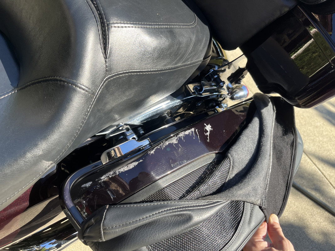 Some scratches and scruffs in the saddle bag area and by right handle bar (see photos).