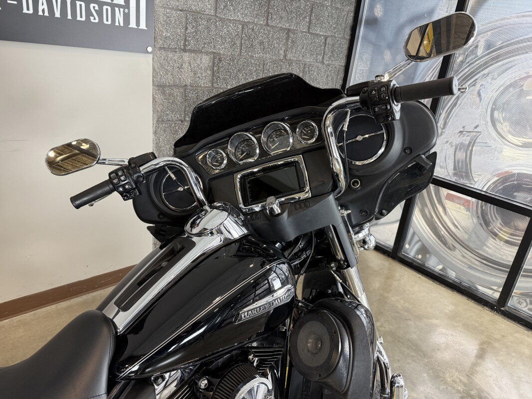 The 2014 Electra Glide Ultra Classic is a great touring motorcycle for your long distance trips. As part of Project RUSHMORE, it has been redesigned for 2014 and features a new air-cooled high output Twin Cam 103 engine with more low-end torque and passing power and is combined with a smooth-shifting Six-Speed Cruise Drive transmission for low rpm at highway speeds. There is more room and improved touring comfort for the passenger and the redesigned the iconic batwing fairing reduces head buffeting. It features anti-lock brakes (ABS) with linked brakes for optimum braking regardless of road conditions and the new Boom Box Infotainment system provides the loudest, clearest sound and most intuitive operation ever on a Harley-Davidson motorcycle. Another feature of the bike is the motorcycle luggage capacity - the sleek new saddlebags and Tour Pak provide more room for your gear and the new latches can be operated with one hand for added convenience.
