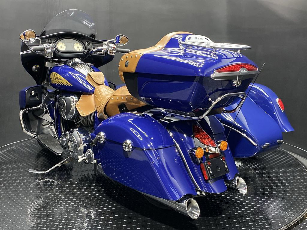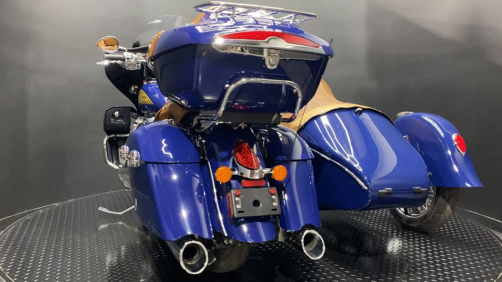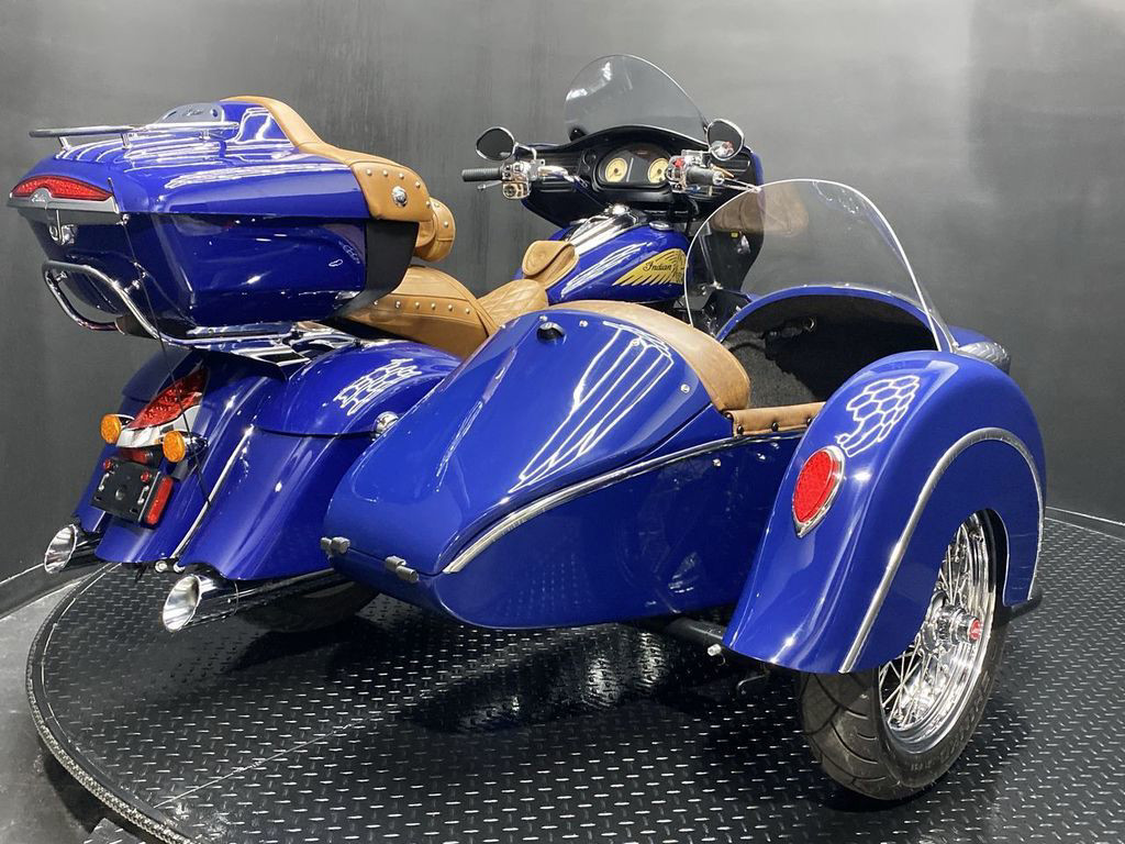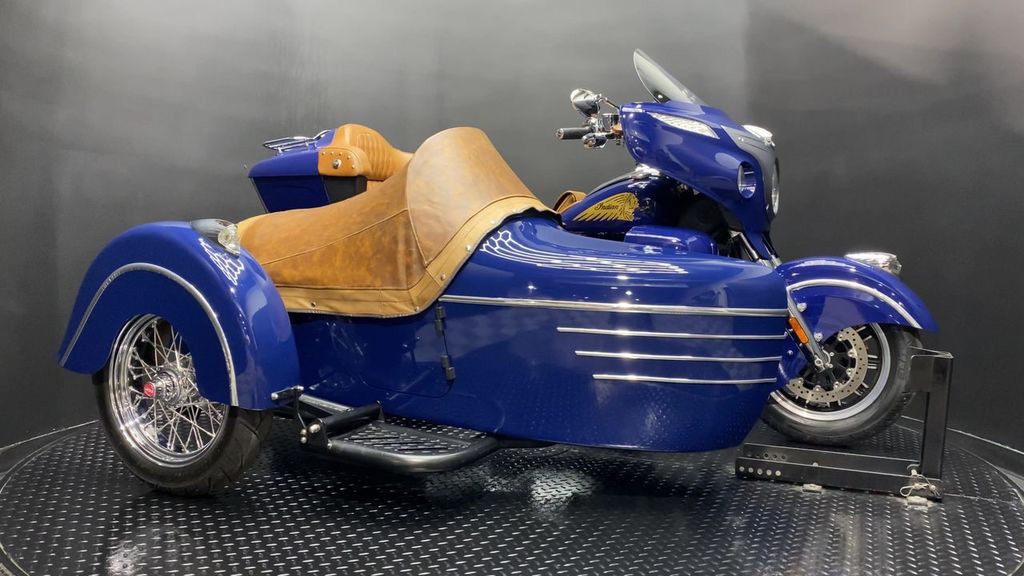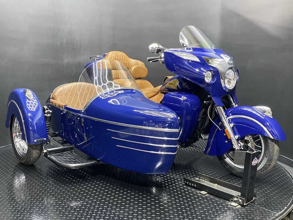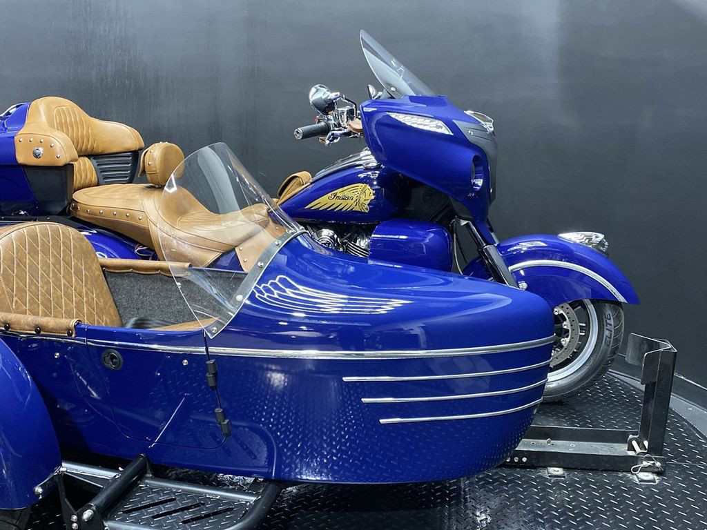 YOU ARE LOOKING AT A 2014 INDIAN CHIEFTAIN WITH SIDECAR AND 10,785 MILES ON IT. IT IS SPRINGFIELD BLUE IN COLOR AND POWERED BY A 1811CC (111") FUEL INJECTED ENGINE AND 6 SPEED TRANSMISSION. THE BIKE COMES WITH ABS BRAKES, CRUISE CONTROL, 2 KEYS, AND 1 FOB. THERE ARE SOME EXTRAS ON THE BIKE WHICH INCLUDE DMC SIDECAR ($13,600.95), PERFORMANCE SLIP-ON MUFFLERS ($839.95), LEATHER HEAT SHIELD ($169.95), RIDER BACKREST ($429.95), DASH POUCH ($119.95), TOUR TRUNK ($1,999.95), SEAT ($1,099.95), AND LOWER FAIRINGS ($999.95). THERE ARE NO SCRATCHES, DENTS, OR DINGS THAT I CAN FIND WITH THE EXCEPTION OF TOUCHUPS ON THE FRONT FENDER, TANK, SMALL TOUCHUPS ON THE SIDECAR, AND IMPERFECTIONS IN THE FINISH. THE CHROME AND ALUMINUM ARE IN GOOD CONDITION WITH THE EXCEPTION OF FLAKING ON THE FRONT FENDER TRIM AND SIDECAR FENDER TRIM. THE TIRES HAVE GOOD TREAD LFFT ON THEM.