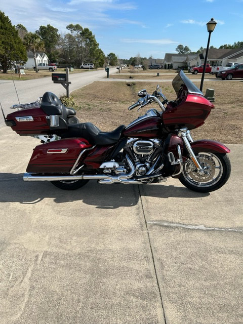 2015 HD Road Glide CVO. Screamin' Eagle Twin-Cooled Twin Cam 110. Color Burgundy Blaze/Typhoon Maroon. Rare find with Programable air ride system (iride) by Thundermax $3000.00 upgrade. 11,000 miles. Bike is in excellent condition! Well maintained Garage kept. Low mileage on tires. Low mileage on last service. True duals with CFR slip-on muffles for a deep rumble sound. All lighting is LED. One-Touch access to the saddlebags and storage compartment and pullback handlebar. Touch-screen Boom! Box 6.5 GT infotainment system pumping 75 watts per channel through four speakers. The system features 3-D GPS and CB radio, plus Bluetooth capability and a USB connection in the Jukebox media compartment. Handgrips and seat are heated, A Power Locking System and H-D Factory Security System, Cruise control, Reflex ABS brake system with linked brakes. Detachable Tour Pak, Remote control Garage door opener.