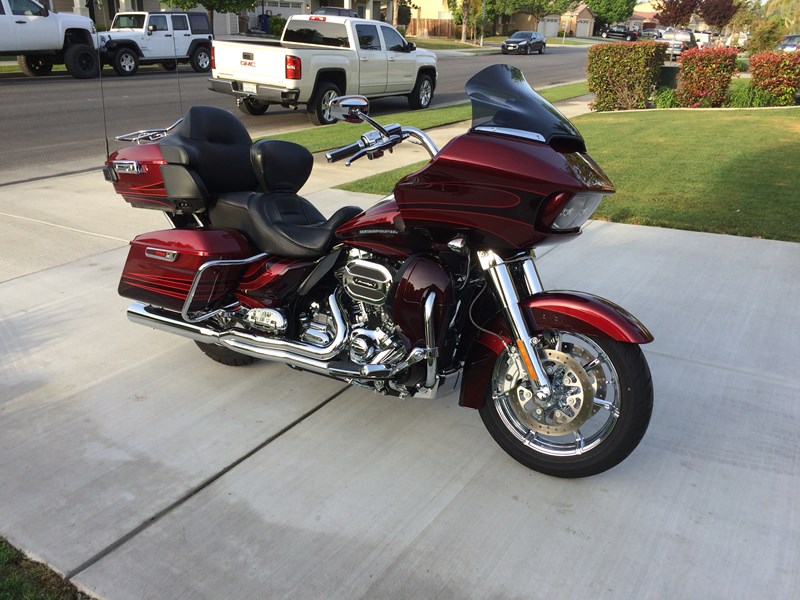 2015 Harley Davidson CVO Road Glide Ultra, Beautiful Burgundy Blaze/Typhoon Maroon Color, 7,312 mi., 110cui., Wet Head, Dyna Tuned, D&L Fat Cat 2 into 1 exhaust, completely serviced, New Dunlop Tires, extra New Set Michelin Scorcher Tires, 2 seats, 5 Windshields, covered and garaged, to many extras to list.