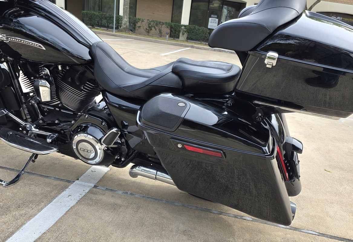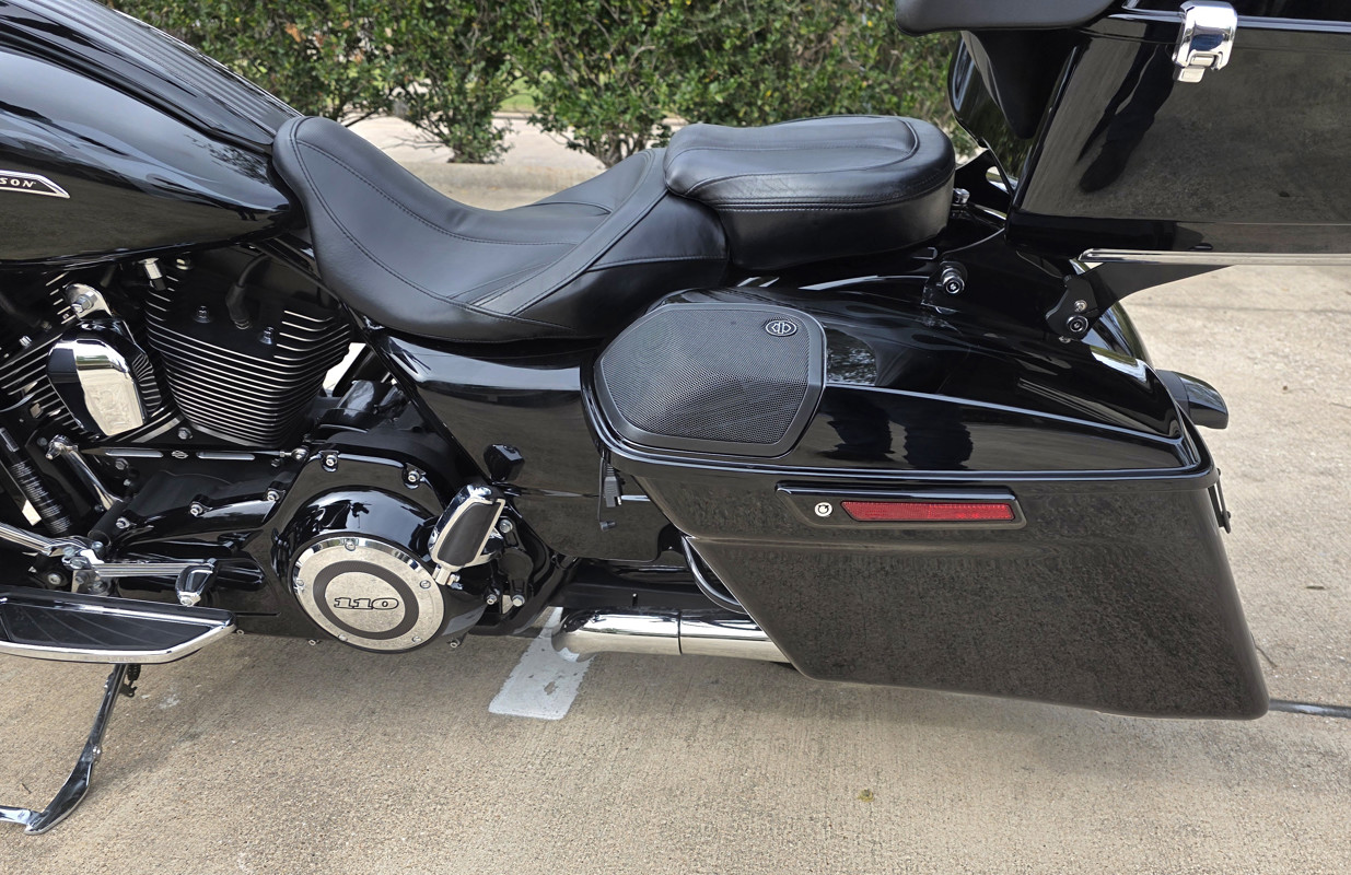 • Injection-molded extended saddlebags with integrated speakers in lids