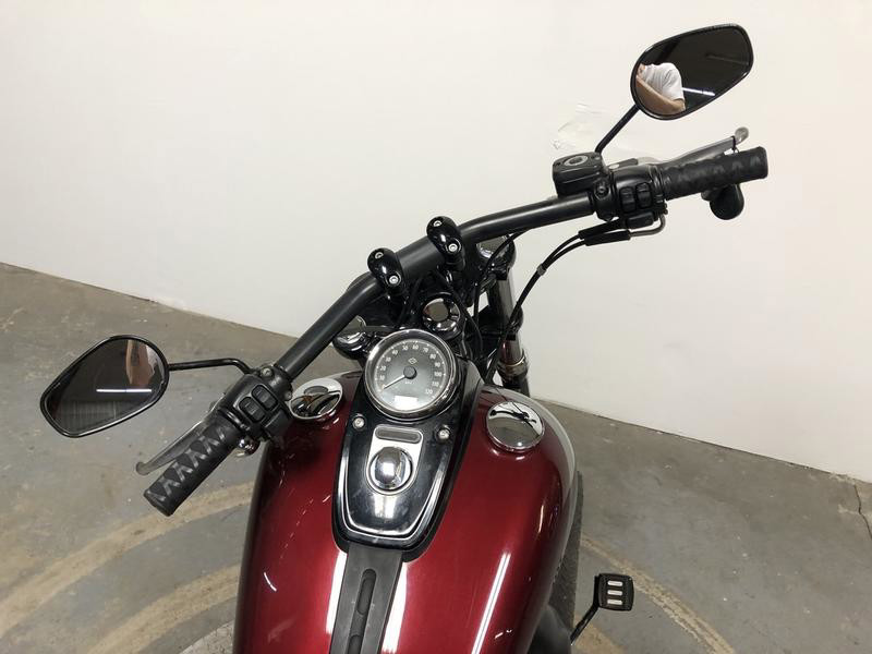 The Fat Bob® motorcycle features an internally wired 1 1/4-inch bar with tall risers. This beefy handlebar is truly reminiscent of an aggressive quarter mile monster. And with the wires routed through the steel, you get a clean, minimal look with nothing standing in your way of the open road.