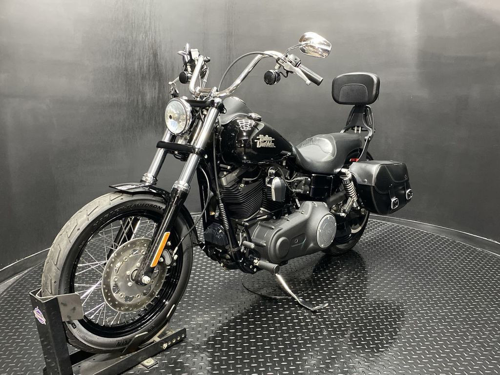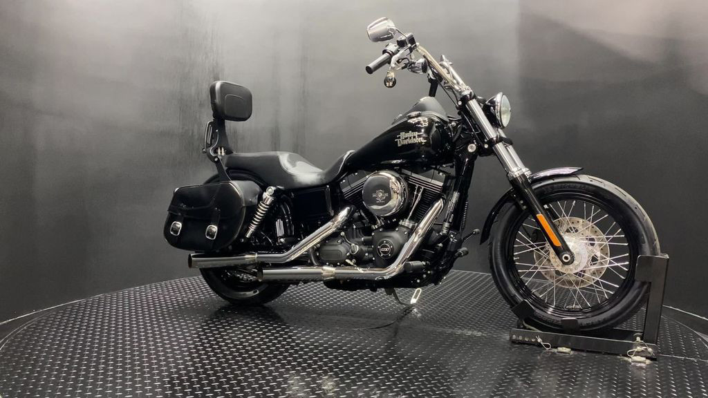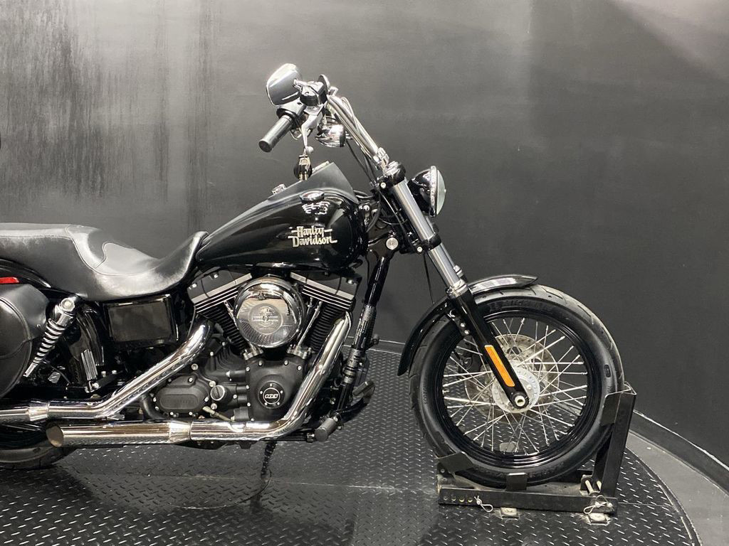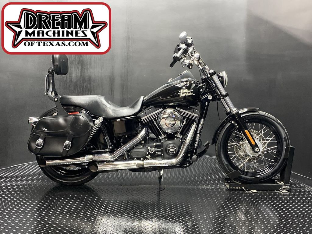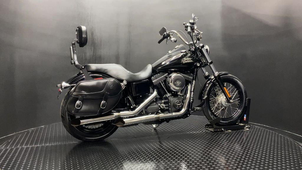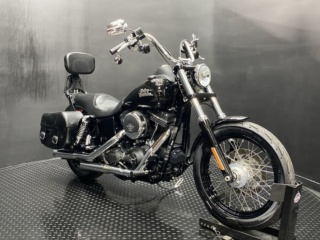 YOU ARE LOOKING AT A 2015 HARLEY DAVIDSON DYNA STREET BOB (FXDB) WITH 12,990 MILES ON IT. IT IS VIVID BLACK IN COLOR AND POWERED BY A 1690CC (103") FUEL INJECTED ENGINE AND 6 SPEED TRANSMISSION. THE BIKE COMES WITH 1 KEY, 1 FOB, AND FACTORY SECURITY SYSTEM. THERE ARE SOME EXTRAS ON THE BIKE WHICH INCLUDE SLASH CUT SLIP-ON MUFFLERS ($399.95), FORWARD CONTROLS ($399.95), SADDLEBAGS ($629.95), SEAT ($309.95), PASSENGER PEGS ($99.95), AND ADJUSTABLE DRIVER/PASSENGER BACKREST ($219.95). THERE ARE NO SCRATCHES, DENTS, OR DINGS THAT I CAN FIND WITH THE EXCEPTION OF SMALL TOUCHUPS ON THE TANK. THE CHROME AND ALUMINUM ARE IN GOOD CONDITION WITH THE EXCEPTION OF TOUCHUPS ON THE FORK LOWERS AND SCRATCHES AND DENTS ON THE EXHAUST. THE TIRES HAVE GOOD TREAD LEFT ON THEM.