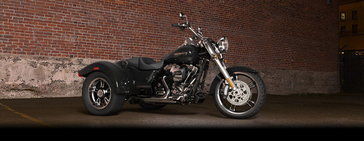 Harley-Davidson puts hot-rod swagger on three wheels with the 2015 Freewheeler motorcycle, the all-new trike model that fuses pure custom style and easy-handling performance. From its ape-hanger handlebar to its bobtail fenders the Freewheeler is a page ripped straight from the bad- attitude handbook, offered in a size that’s shorter and lighter for a riding experience like nothing else on the road.