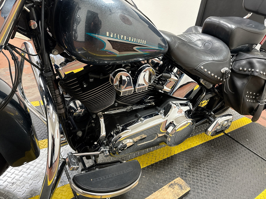 Come on you know... This one checks the boxes if you’ve been hunting for a clean, old-school cruiser with stamina. This 2015 FLSTC Heritage Softail Classic in Black Magic is ignited by the High Output Twin Cam 103.