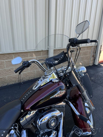 2015 Harley-Davidson® Heritage Softail® ClassicBlazing from the past with original dresser spirit and modern touring capabilities.Features May Include:Hidden Rear ShocksIf you want a comfortable bike but love that rigid-suspension look, you've come to the right bike. We've kept all the modern comforts where they belong—below the surface of a rad, vintage-looking bike. You get the classic lines of a vintage "hardtail" frame with the horizontal rear shocks hidden in the guts. It's a signature rigid look, and you'll only find it on a Softail® model.Nostalgic Custom StyleDo laced wheels, whitewalls and studded leather add to the way a bike feels on the road? Of course they do. It's these extras that make the Heritage Softail® Classic model the quintessential boulevard cruiser. As rallies were gaining grassroots traction in the '40s, you'd roll into Daytona Bike Week expecting new stories and new styles. There was really something going on, and it's still alive and well in this bike. Take the saddlebags, studded with style straight from that golden era, with hidden quick-detach buckles. Or the fenders—full and fluid, with chrome highlights and matching paint. Or that big, commanding 7-inch ball headlamp, chromed and classy. And let's talk wheels. You can go with the standard steel-laced wheels on blackwalls with a chrome hub. Or turn the clock all the way back with the optional chrome laces and wide whitewalls.Old-School Tank and 3-D MedallionThe unique medallion on the Heritage Softail® Classic motorcycle is glass-inlayed, cloisonné-and-chrome style and shows that Harley-Davidson® Softail® model heritage that runs in your blood. With a five-gallon capacity for long weekend cruising, we top off this tank with a nostalgic chrome "cats-eye" console, paint for days and style to spare.Tank-Mounted ConsoleThe speedometer face boasts a big, bold display for the odometer, along with an ancillary display for gear and rpm, offering up the information you need on the fly.Tombstone TaillightA vintage classic. The chrome, low profile taillight housing lays back against the fender but shines with Harley-Davidson history. Flanked by our sleek silver bullet turn signals, that glowing red gravestone is the last thing they'll see as you pull away into the night.Whitewall TiresOne of the defining styling features of the Softail® Deluxe model is the nostalgic wide whitewall tires with premium laced wheels. A nod to the ‘50s boulevard look, these fat rubber rollers are just the right throwback detail from Harley-Davidson that ups the ante in any scene. Total old-school styling without sacrificing handling or performance.Hard Candy Custom™ PaintHard Candy Custom™ is a large metal flake finish that’s more than just paint job, it’s a shining declaration of independence—bright, bold and unique. The Softail Deluxe is available in Hard Candy Cancun Blue Flake. Recalling the iconic rebel styling of ‘70s custom bikes, Hard Candy Custom marks another milestone in The Motor Company’s legacy of innovation. We start with several passes of 200 micron flake over a silver base, then clear coat it, hand-lay and mask the pattern and apply the Candy color to allow the flake to shine through. Then more clear coat and hand striping to a deep smooth finish. It’s a painstaking process that delivers a premium custom look straight from the factory, so you can start flying your colors with no waiting, no stripping or extra effort.