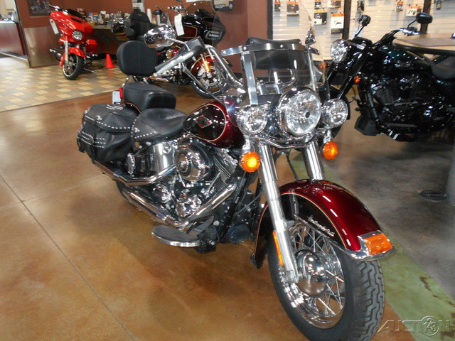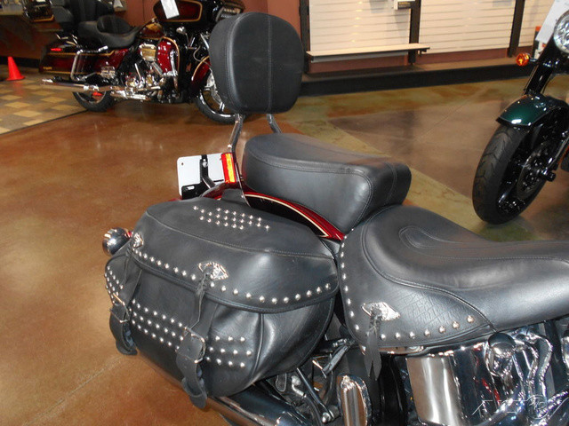 2015 Harley-Davidson® Heritage Softail® ClassicBlazing from the past with original dresser spirit and modern touring capabilities.Features May Include:Hidden Rear ShocksIf you want a comfortable bike but love that rigid-suspension look, you've come to the right bike. We've kept all the modern comforts where they belong—below the surface of a rad, vintage-looking bike. You get the classic lines of a vintage "hardtail" frame with the horizontal rear shocks hidden in the guts. It's a signature rigid look, and you'll only find it on a Softail® model.Nostalgic Custom StyleDo laced wheels, whitewalls and studded leather add to the way a bike feels on the road? Of course they do. It's these extras that make the Heritage Softail® Classic model the quintessential boulevard cruiser. As rallies were gaining grassroots traction in the '40s, you'd roll into Daytona Bike Week expecting new stories and new styles. There was really something going on, and it's still alive and well in this bike. Take the saddlebags, studded with style straight from that golden era, with hidden quick-detach buckles. Or the fenders—full and fluid, with chrome highlights and matching paint. Or that big, commanding 7-inch ball headlamp, chromed and classy. And let's talk wheels. You can go with the standard steel-laced wheels on blackwalls with a chrome hub. Or turn the clock all the way back with the optional chrome laces and wide whitewalls.Old-School Tank and 3-D MedallionThe unique medallion on the Heritage Softail® Classic motorcycle is glass-inlayed, cloisonné-and-chrome style and shows that Harley-Davidson® Softail® model heritage that runs in your blood. With a five-gallon capacity for long weekend cruising, we top off this tank with a nostalgic chrome "cats-eye" console, paint for days and style to spare.Tank-Mounted ConsoleThe speedometer face boasts a big, bold display for the odometer, along with an ancillary display for gear and rpm, offering up the information you need on the fly.Tombstone TaillightA vintage classic. The chrome, low profile taillight housing lays back against the fender but shines with Harley-Davidson history. Flanked by our sleek silver bullet turn signals, that glowing red gravestone is the last thing they'll see as you pull away into the night.Whitewall TiresOne of the defining styling features of the Softail® Deluxe model is the nostalgic wide whitewall tires with premium laced wheels. A nod to the ‘50s boulevard look, these fat rubber rollers are just the right throwback detail from Harley-Davidson that ups the ante in any scene. Total old-school styling without sacrificing handling or performance.Hard Candy Custom™ PaintHard Candy Custom™ is a large metal flake finish that’s more than just paint job, it’s a shining declaration of independence—bright, bold and unique. The Softail Deluxe is available in Hard Candy Cancun Blue Flake. Recalling the iconic rebel styling of ‘70s custom bikes, Hard Candy Custom marks another milestone in The Motor Company’s legacy of innovation. We start with several passes of 200 micron flake over a silver base, then clear coat it, hand-lay and mask the pattern and apply the Candy color to allow the flake to shine through. Then more clear coat and hand striping to a deep smooth finish. It’s a painstaking process that delivers a premium custom look straight from the factory, so you can start flying your colors with no waiting, no stripping or extra effort.
