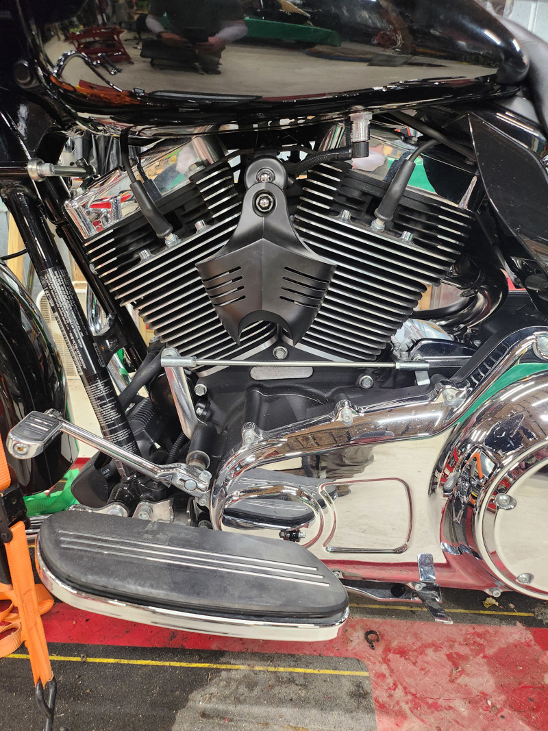 Big sucker breather and Bassani 2 to 1 exhaust. 14inch ape hangers, 103 stock v-twin, tires good. Chrome agitator front wheel 19". Stock back wheel,mustang seat, custom alligator seat,stock seat. Black ice agitator back wheel also off bike. Adjustable passenger back rest with rack. Very clean adult ridden bike. Coil over shocks also have stock rear shocks. Extra windshields anything I have for bike you can have.