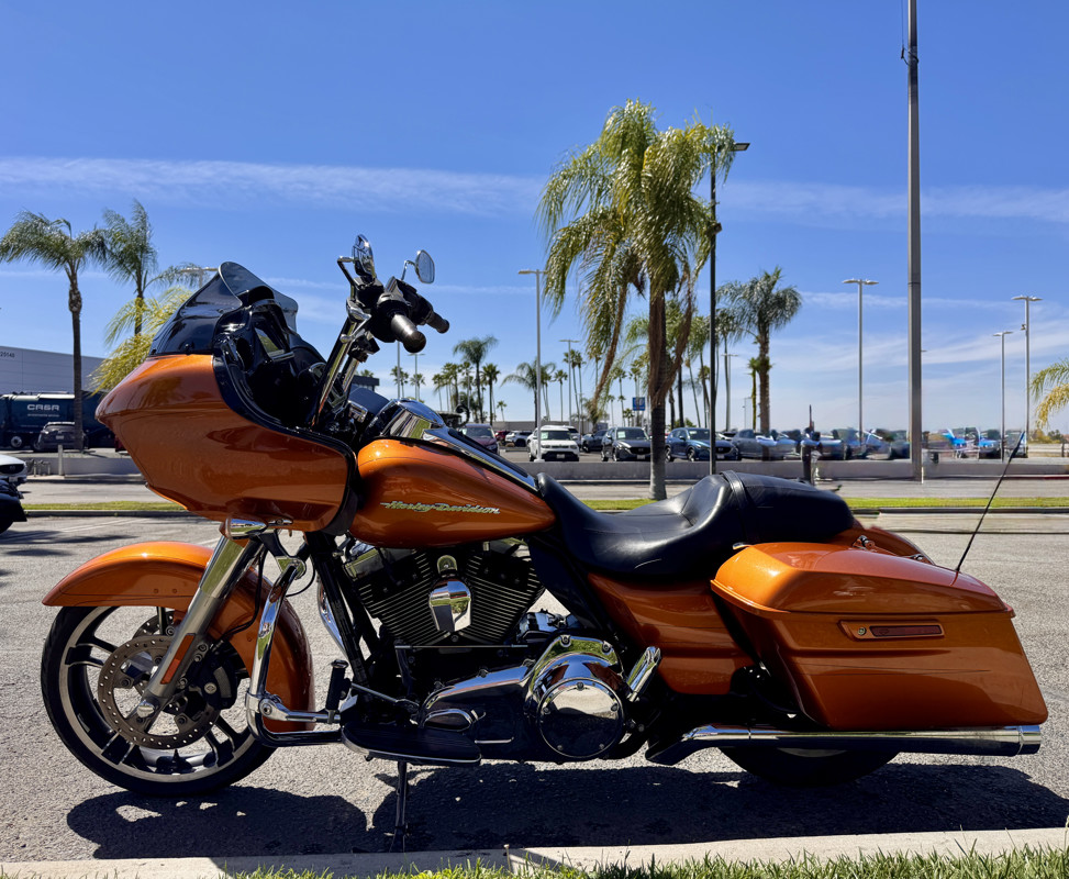 This 2015 Road Glide Special is a clean touring bike with custom chrome upgrades and classic Harley styling.