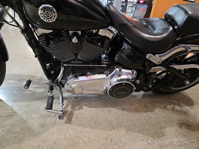 2015 Harley-Davidson® Softail® Breakout®Big wheels, big paint and classic drag-bike attitude meet premium modern refinement in this attention-grabbing cruiser.Features may include:Side-mounted License PlateWe keep the look of the Breakout® model's signature rear clean and minimal with this side-mounted bracket, so nothing gets in the way of the showing off that big rear tire and tight fender.Six-Speed Cruise Drive® TransmissionYou want a ride that rumbles—not begs for mercy—when you lean on it a little. The Six-Speed Cruise Drive® transmission provides smooth, quiet shifting and reduces engine speed on the highway, so you get a better match between engine turnover and road speed. It's a rare ride when a bike responds like this, and a low growl goes a long way when you're opening up the road ahead.Twin Cam 103™ Engine PowerLive your ride to the power of Twin Cam 103™. The air cooled Twin Cam 103™ Harley Davidson® engine delivers more stump-pulling torque, while its Electronic Sequential Port Fuel Injection jetting gives crisp, lively throttle reaction. It’s a performance punch you’ll appreciate when passing, climbing hills, or just catching eyes as you cruise by—all under that signature Motor Company rumble. And it comes at lower cruising rpm, so you ride more smoothly, with less engine vibration and better highway fuel economy.H-D® Smart Security SystemThe factory-installed next-generation security system features a hands-free fob that automatically arms and disarms the vehicle's electronic security functions as you approach and walk away from the bike. Stick the fob on your ignition key ring and let it do all the work. It's this attention to detail and security that make Harley-Davidson® motorcycles unique.New Front Brake SystemA new front brake system on the Softail® models this year delivers a 40 percent reduction in the amount of lever force required at peak braking. The handlebar master and front cylinders have been restyled. There's a new 4-piston fixed caliper with 32 and 34 mm pistons, premium caliper piston coating to minimize initial displacement and a larger 300 mm rotor. It all adds up to more stopping power with less effort.Drag-Style HandlebarDesigned exclusively for the Breakout® model, these low and wide handle bars put you in an aggressive reach-forward riding position. And we routed their wiring internally, keeping a minimalist look that goes with the overall clean custom styling.