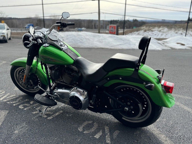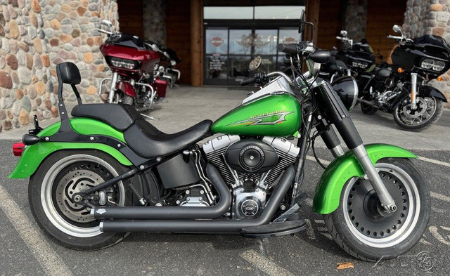 2015 Harley-Davidson® Softail® Fat Boy® LoFat, dark and strong, this down-and-dirty version of the custom icon is the big dog on the road.Features may include:Fat Custom StyleRecalling the "hardtail" choppers of the '60s and '70s, the Fat Boy® Lo model keeps that heritage alive more than forty years later. It shows a darker side of the original "fat custom" bike—laid-back and blacked-out with an unmistakable profile on the road. But the nostalgic style isn't just about the confident stance, paint and old-school detail. It's how you look riding it. It's how it feels. It's the classic, relaxed riding position that speaks volumes. You're not just cruising. You're in charge—kicked back on a throne of machined metal surveying your domain.Pure Harley-Davidson StylingFeast your eyes on the Twin Cam 103™ engine and there's no mistaking its roots. This is authentic Harley-Davidson style through and through with an attention to detail you won't find from any other motorcycle company. Black powder-coated heads and cylinders are highlighted by machined cooling fin tips and satin chrome rocker covers. It's a jewel machined out of metal. Pure. Dripping with power. From the classic edge of the cooling fins to the clean lines of cases and covers—the Twin Cam 103™ engine makes an ironclad statement about holding on to what's right and staying true to what satisfies.H-D® Smart Security System (Optional)The optional factory-installed next-generation security system features a hands-free fob that automatically arms and disarms the vehicle's electronic security functions as you approach and walk away from the bike. Stick the fob on your ignition key ring and let it do all the work. It's this attention to detail and security that make Harley-Davidson® motorcycles unique.New Front Brake SystemA new front brake system on the Softail® models this year delivers a 40 percent reduction in the amount of lever force required at peak braking. The handlebar master and front cylinders have been restyled. There's a new 4-piston fixed caliper with 32 and 34 mm pistons, premium caliper piston coating to minimize initial displacement and a larger 300 mm rotor. It all adds up to more stopping power with less effort.Full-Length Rider FootboardsYour boots were made for riding, in any way you see fit. Our full-length footboards boast a tried and true design that's stood the test of time. Plenty of foot positions for your taste and comfort. Rubber vibration isolation for a comfortable ride. And heel-toe shifting for confident shifting every time. It takes a few rides, but once you've gotten used to the smooth heel-toe rhythm, you'll never give it up. The toes of your boots won't take the same beating, either.