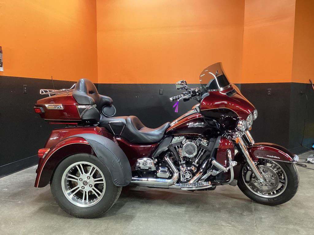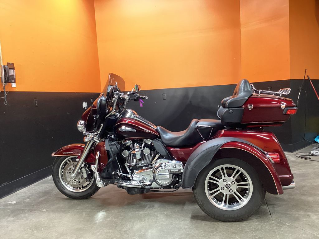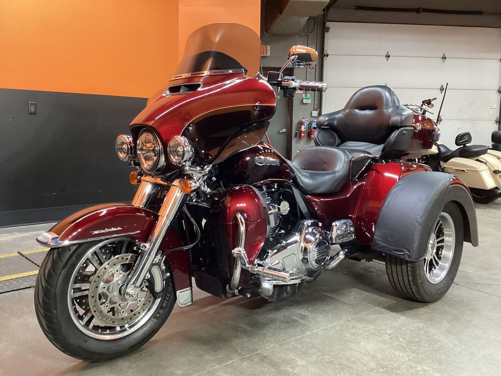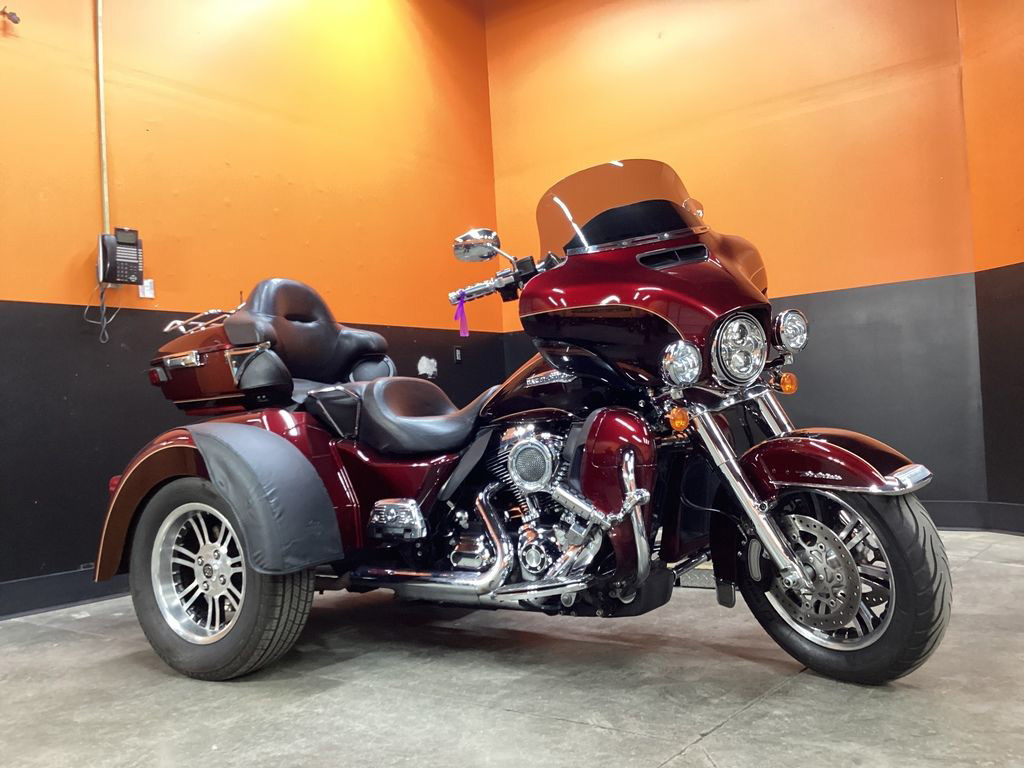 ONLY 42,115 MILES, REVERSE, NAVIGATION, CHROME FORKS, DYNO JET POWER VISION TUNER SCREEN, UPGRADED HIGH FLOW INTAKE, UPGRADED BIG HANDLEBARS, RIDER AND PASSENGER CHROME FLOORBOARDS AND INSERTS, MATCHING CHROME FOOT CONTROLS, HD DAYMAKER LED HEADLIGHT AND SPOT LIGHTS, LED FENDER TIP, REAR RACK, HIGHWAY PEGS, PASSENGER GRAB HANDLES, CHROME WINDSHIELD TRIM, CHROME SPEAKER TRIM, UPGRADED GRIPS, LINKAGE, AND DERBY COVER, CYLINDER FANS, HD WINDSHIELD BAG, LOWER FAIRING STORAGE, OHLINS STEERING STABILIZER, AUDIO, CRUISE CONTROL, SECURITY, BLUETOOTH, WIND DEFLECTORS, HEAT DEFLECTORS, 103" MOTOR, 6 SPEED TRANS, AND NEW FRONT TIRE! CLEAN AND LOADED 2-TONE TRIKE! THE PAINT UNDER THE REAR FENDER BRAS AND THE TRIKE BODY DOOR IS CRACKING.