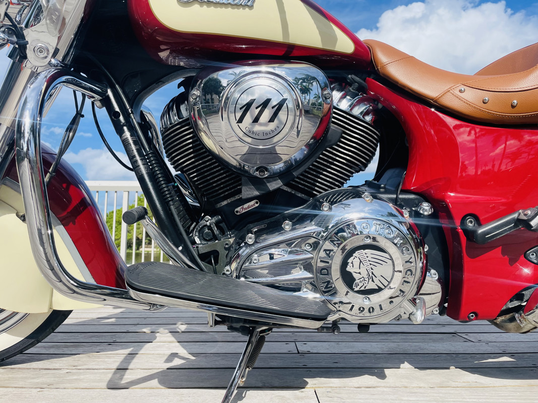 This Chief Vintage is a little bit of a conundrum. It is a one-owner bike with about 2K miles on her. Why “about”? We do not know the exact mileage since the wheel speed sensor was not running for years and the mileage shown on the odometer is 56 miles. How do we know it is about 2,000 then? The tires on the bike are original (therefore have to be replaced by the next owner) and show thread consistent with 2K miles of use. The wheel speed sensor is unfortunately a rather common thing on these bikes. It was just replaced and the bike received a full look over. Speedo and Odo work fine now.