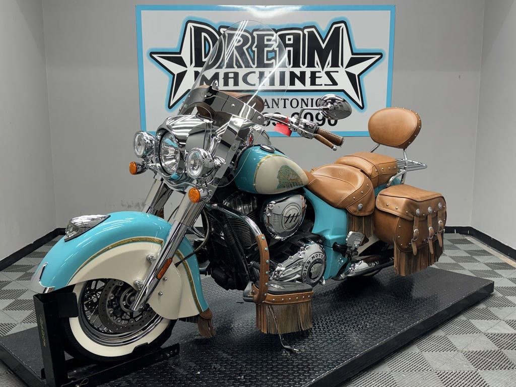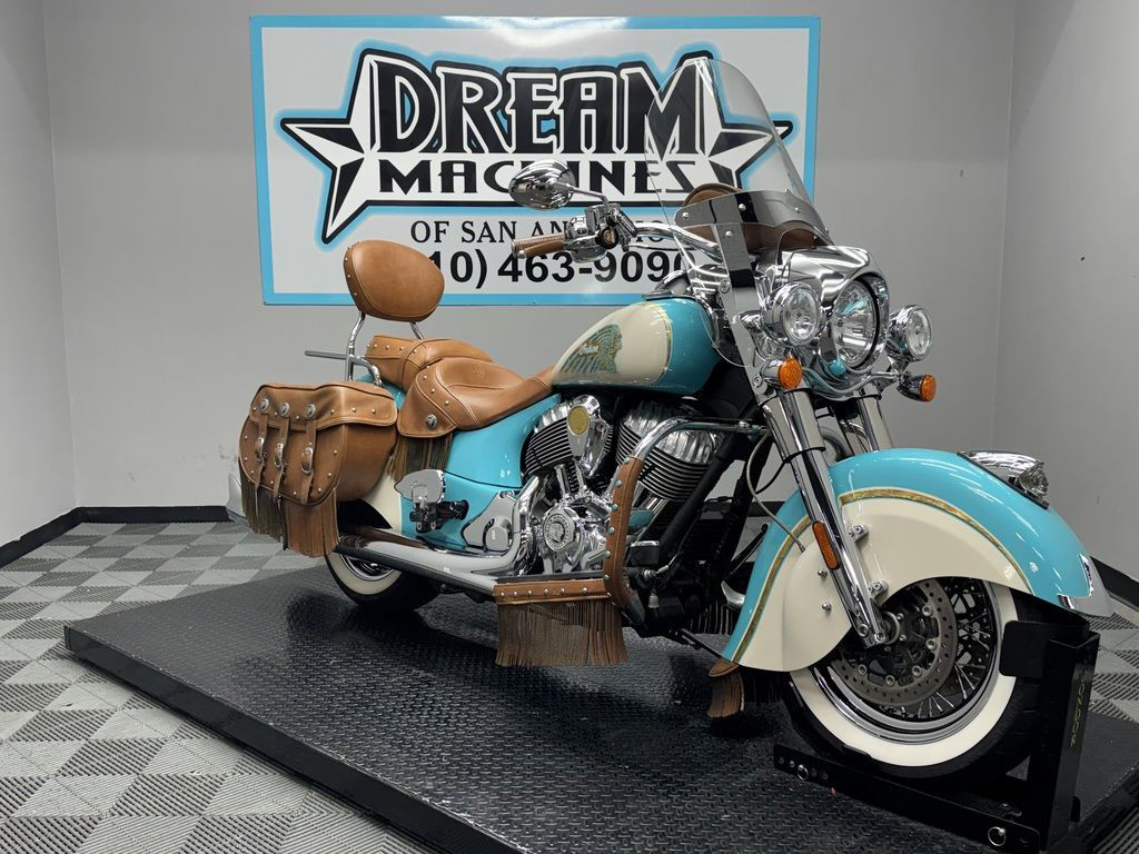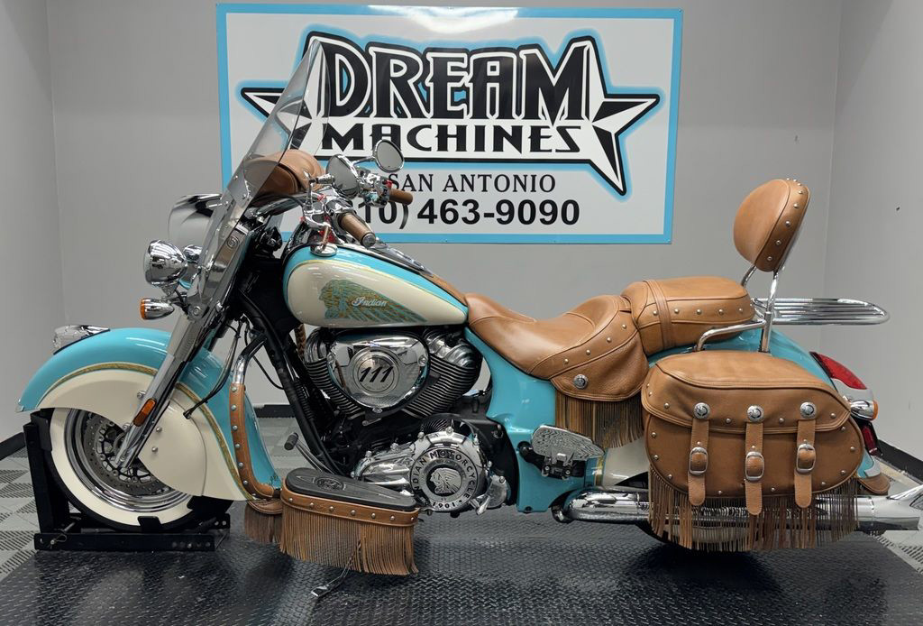 *BOOK VALUE IS $11,285 SHIPPING, LEASING, FINANCING AND EXTENDED WARRANTY MAY BE AVAILABLE! YOU ARE LOOKING AT A 2015 INDIAN CHIEF VINTAGE WITH 10,166 MILES ON IT. IT IS CUSTOM TEAL AND CREAM IN COLOR AND POWERED BY A 1811CC (111") FUEL INJECTED ENGINE AND 6 SPEED TRANSMISSION. THE BIKE COMES WITH ABS BRAKES, CRUISE CONTROL, 1 KEY, AND 1 FOB. THERE ARE SOME EXTRAS ON THE BIKE WHICH INCLUDE FISHTAIL SLIP-ON MUFFLERS ($999.95), PASSENGER FLOORBOARDS ($449.95), PASSENGER BACKREST ($469.95), LUGGAGE RACK ($279.95), LEATHER WINDSHIELD BOG ($229.95), REAR FENDER TRIM ($129.95), FLOORBOARD TRIM ($204.95), AND ENGINE GUARD WRAPS ($179.95). THERE ARE NO SCRATCHES, DENTS, OR DINGS THAT I CAN FIND WITH THE EXCEPTION OF A SMALL SCRATCH ON THE TANK AND WINDSHIELD. THE CHROME AND ALUMINUM ARE IN GOOD CONDITION. THE TIRES HAVE GOOD TREAD LEFT ON THEM.