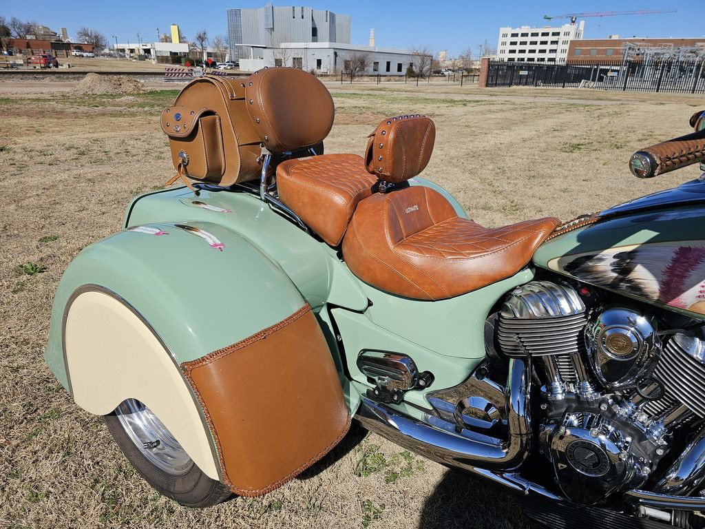 The comfortable seat and spacious saddlebags feature new desert tan leather designed to withstand the elements.This sealed, high-quality leather is strong and durable, and it complements the traditional Indian Motorcycle® style.