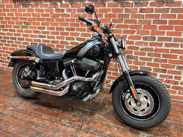 2016 Harley-Davidson® Dyna® Fat Bob®Blacked-out finishes. Dual bullet headlamps. This one raises a ruckus just rolling into town.It takes styling cues from the barrel of a Tommy Gun.Subtle is not the word that comes to mind when describing the Fat Bob® model. It isn’t just built to grab eyes. It’s built to cause a commotion. Tommy Gun exhaust. A unique dual headlight and custom taillight. Fat rubber rolling on machined disc wheels. And performance that lets you get down to business with 103 cubic inches of high-output H-D engine and dual disc brakes. The look is outrageous, but when you sink into the saddle you’re in for one sweetheart of a ride.Features may include:Authentic StylingThe motorcycles in the Dyna family trace their roots to the original Harley-Davidson factory customs. Notice the powerful front ends, chromed steel details and tricked-out wheels. There isn’t an ounce of doubt that you’re looking at a rolling sculpture. But there’s something bigger at work here than a mere visual statement. These are motorcycles sprung from a long riding tradition, with a strong emphasis on the riding. Post-war bobbers. Rebellious 70s choppers. Motorcycles where the theme was riding hard and the only rule was nonconformity. The profile is long and low, built to show off plenty of muscle. The 45° V-Twin engine is the jewel at the center of the design. There is no denying the powerful message sent by such a machine. It says get in the saddle, fire up Big Twin engine, treat your ears to the most satisfying exhaust note in all of motorized transportation, then go wherever the road out of town takes you.Iconic EngineThere is something about the steady pulse of power from an air-cooled Twin Cam 103™ engine that works its way into a rider and won’t let go. Once you’ve experienced it you understand. Nothing else in the world of motorized transportation could be as satisfying. There are perfectly rational explanations for this. The lightweight piston design and refined delivery of power. The strong driveline and bulletproof internal parts. The way engine and Six-Speed Cruise Drive transmission work flawlessly together to carry you down the highway at a relaxed, easy-riding rpm. But rational explanations never go far enough. What you feel when the power of this engine pulls you down the road toward the vanishing point is the legacy of the Flathead, Knucklehead, Panhead, Shovelhead, Evolution, Twin Cam 88 and Twin Cam 96 engines that came before. It’s something no ordinary engine can deliver.TechnologyYou don’t see a lot of 21 century technology peeking through the clean old-school lines of the motorcycles in the Dyna family. That’s the point. Once the teams of engineers and industrial designers have finished building the systems that load these motorcycles up with modern function, the job is only half finished. The next step is to find smart ways to integrate it into the design without taking away from the styling cues. Take the anti-lock brakes that are either standard or available as a factory-installed option across the line. It’s one of the top ABS systems out there, and gives you the control you want in a modern motorcycle. But the real beauty is the way we streamlined the look of the hardware.HandlingIf there’s anything the unruly bunch of riders that gravitate to a Dyna® motorcycle have in common, it’s that they’re not easily satisfied. So we built every bike in the family to bridge the gap between knockout looks and uncompromising open road function. The exceptional stiffness of the chassis makes for sure-footed handling. The brakes and suspension components are top end, and the custom-style wheels roll on premium rubber designed for both durability and grip performance.
