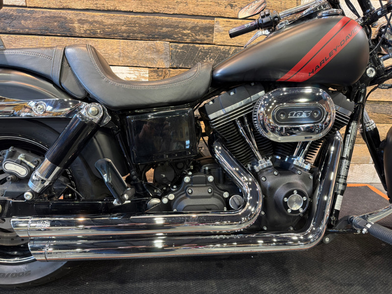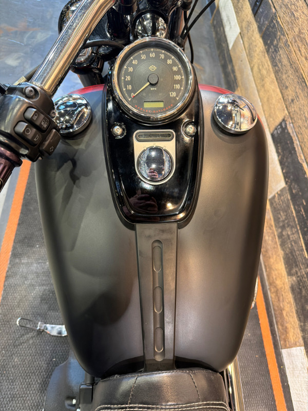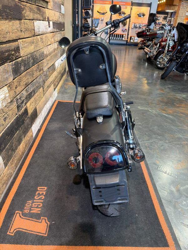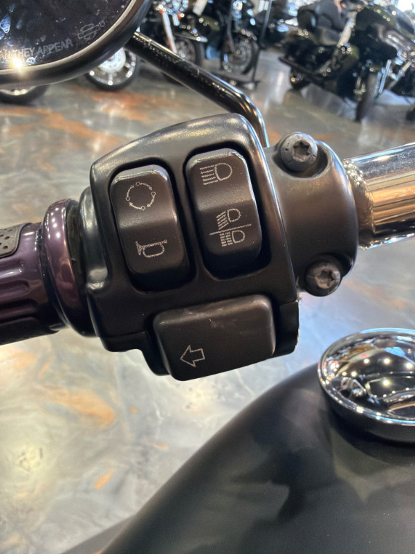 This bike comes with the Twin Cam 103 Engine, 6-Speed Transmission, Blacked Out Engine, Black Front Forks, Vance and Hines Exhaust, Backrest, H-D Grips, H-D Derby Cover, LED Headlamps, and more