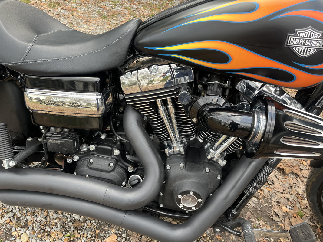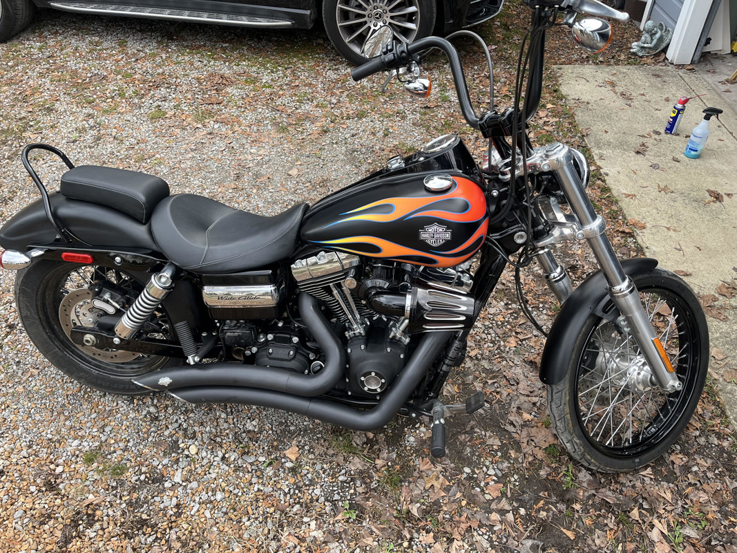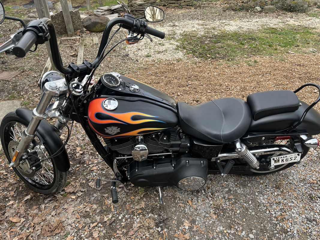 Pristine 2016 wideglide in flat black with orange / yellow flames with blue border. Always garage kept and covered. 12" ape hangers in black. Vance and Hines exhaust. Collector bike. Clean Texas title.