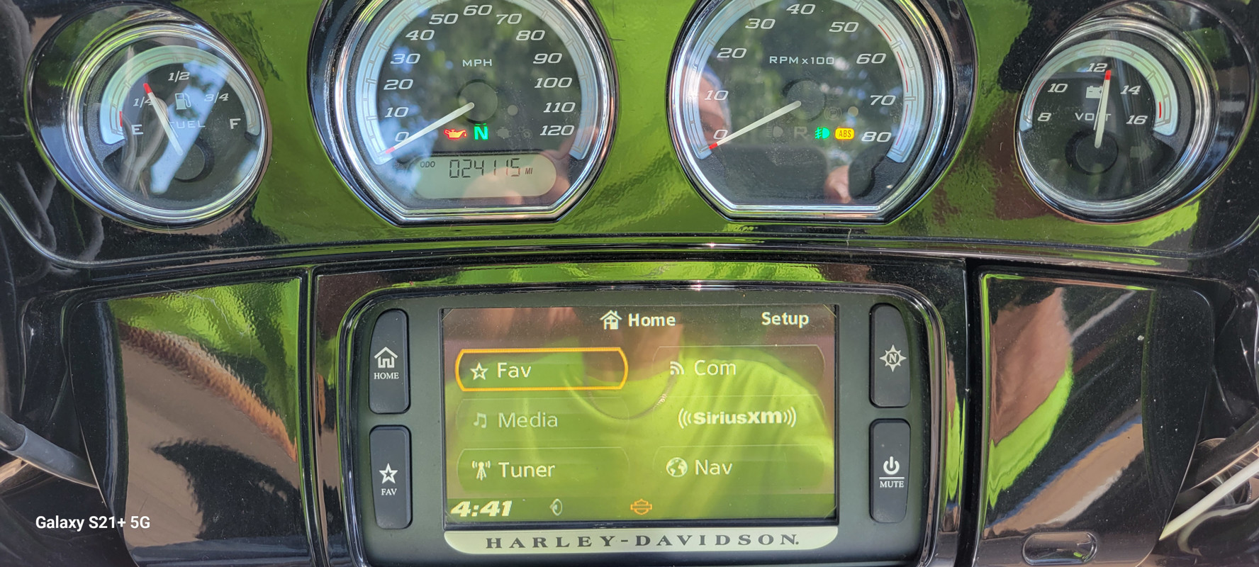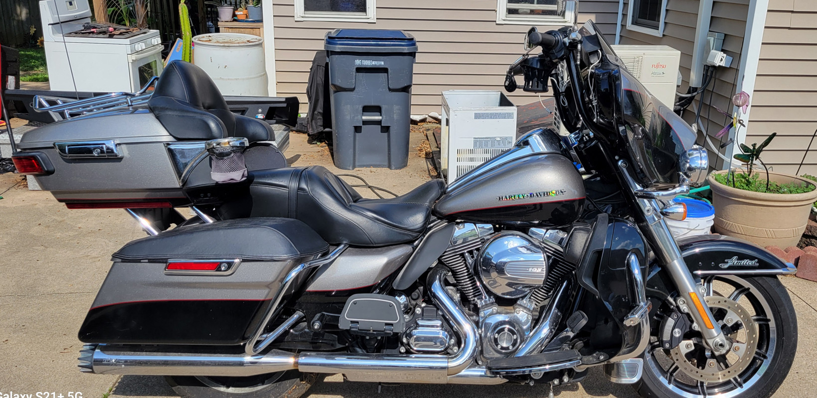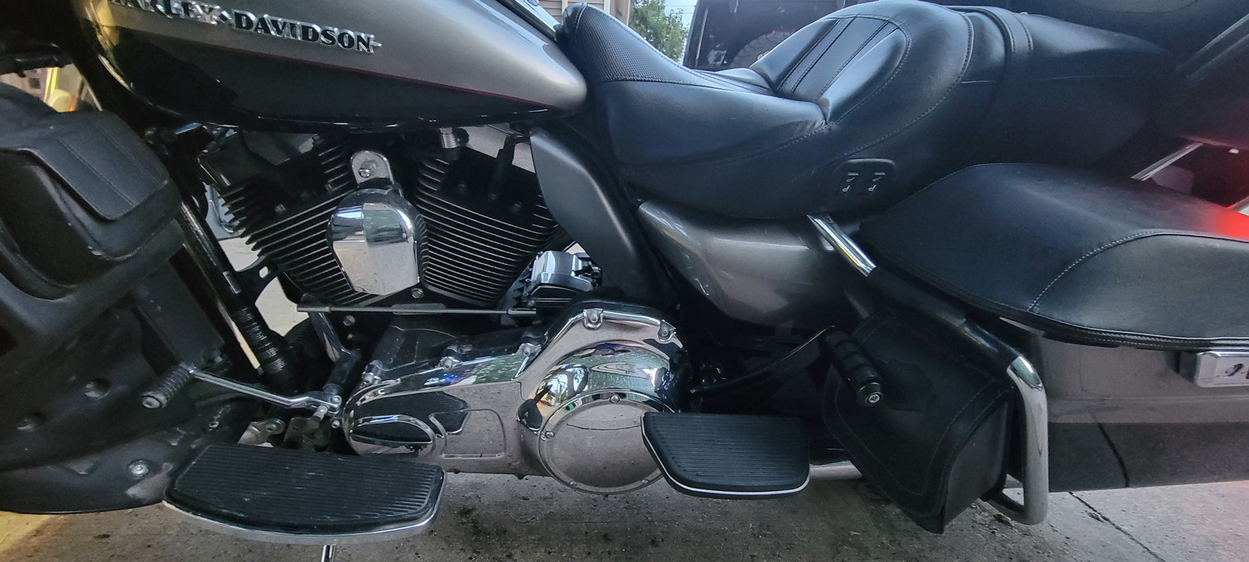 Heated seat, xm radio module, 12" handle bars,highway pegs, rear adjustable passenger foot rest, tour pack lid organizer, windshield bag, sadle bag removable storage bags, new battery