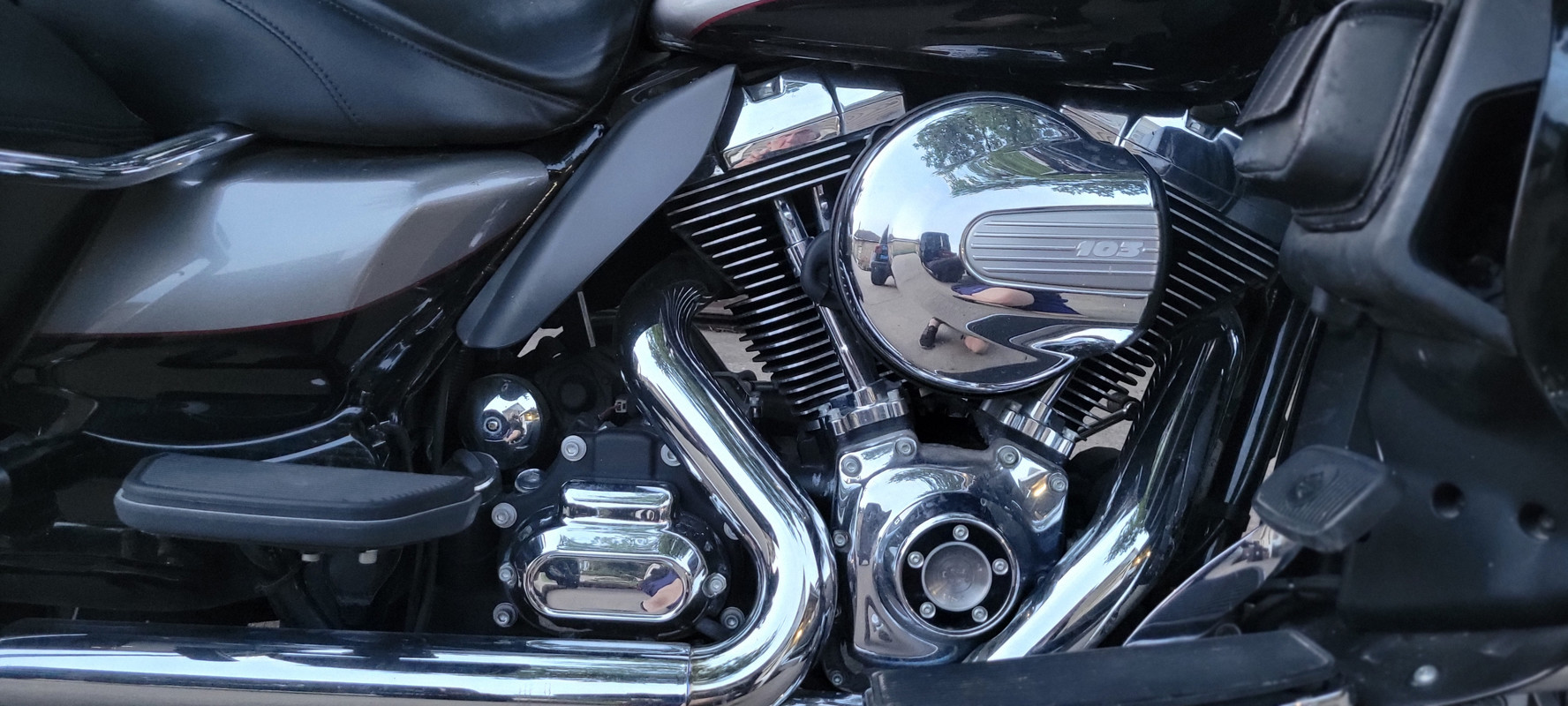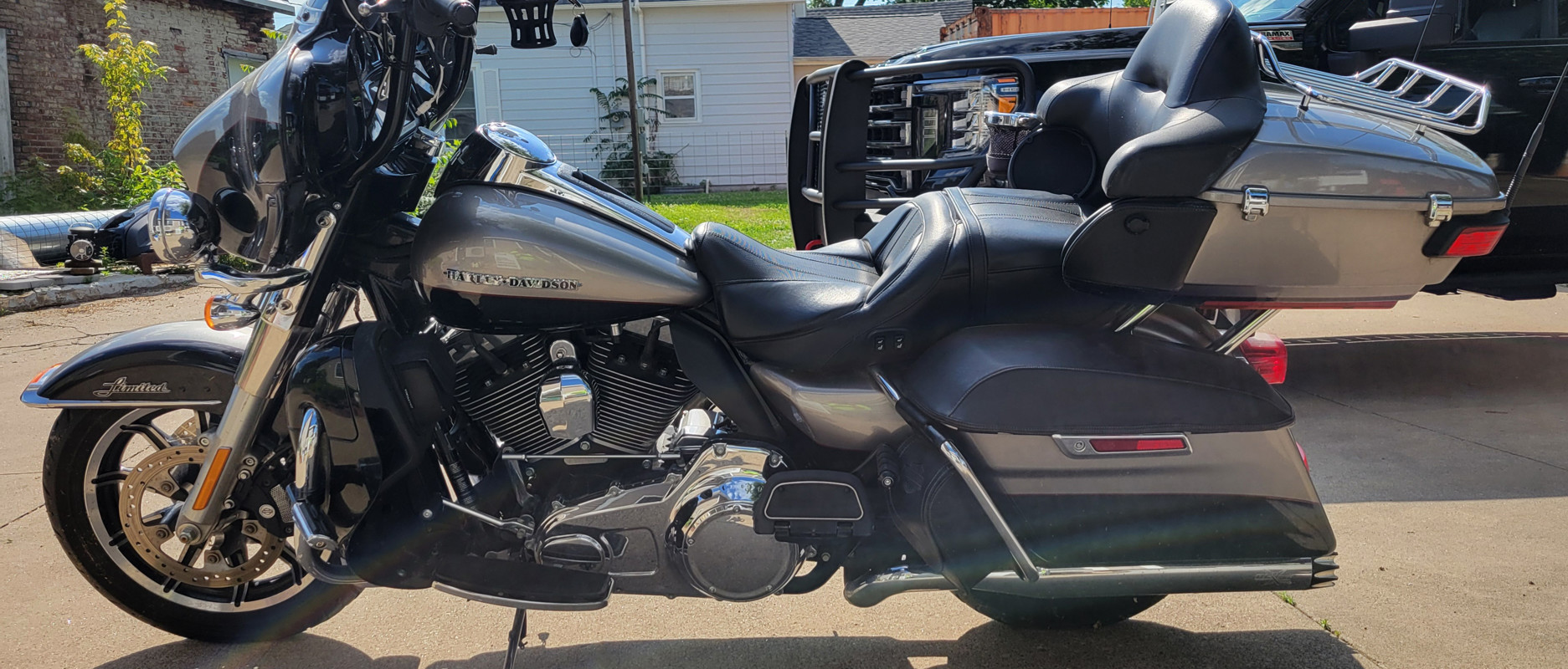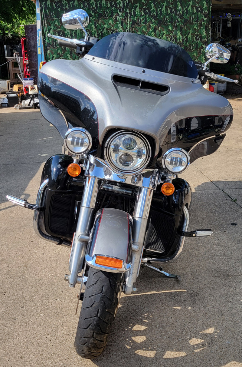 Heated seat, xm radio module, 12" handle bars,highway pegs, rear adjustable passenger foot rest, tour pack lid organizer, windshield bag, sadle bag removable storage bags, new battery