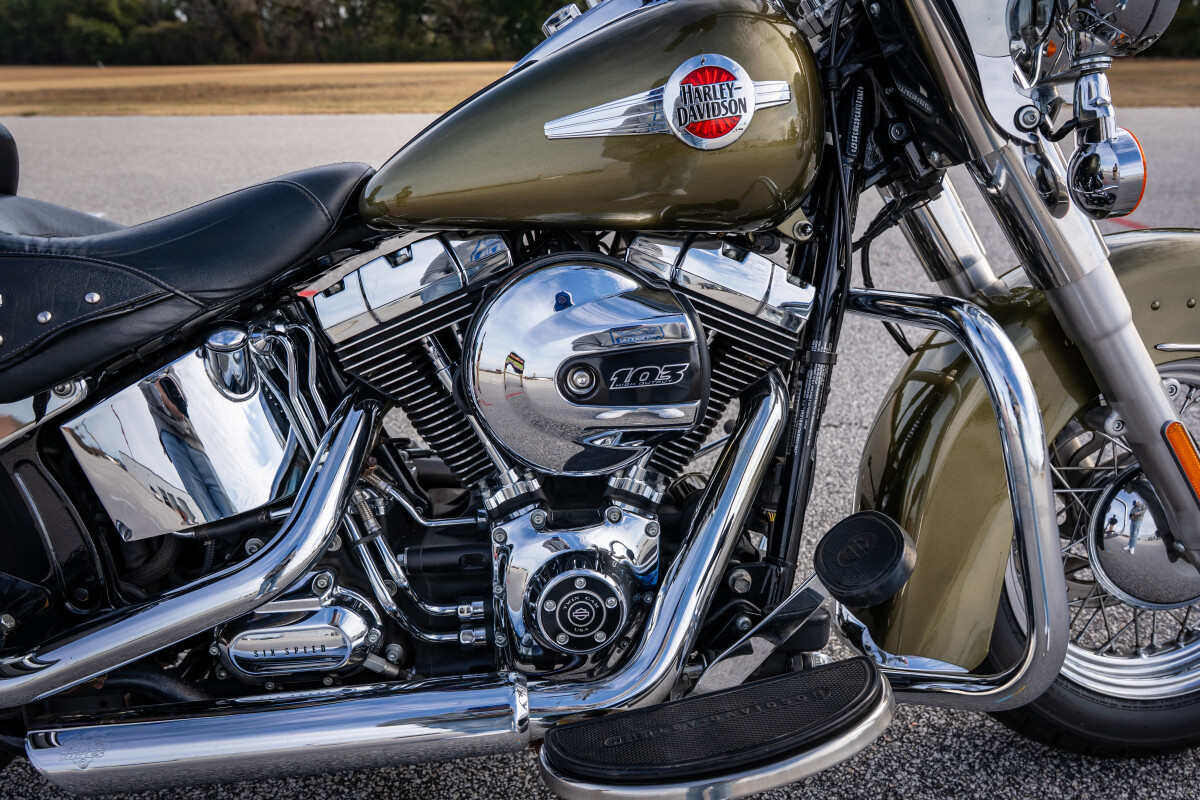 The Heritage Softail Classic drips with the nostalgia of days gone by, but that’s only half of the equation for the rider of today. The hidden suspension gives you the authentic look without the bone-shaking ride of an old Hardtail. You get the comfort of cruise control for those long stretches of pavement. A redesigned seat and redesigned leather saddlebags. And best of all, a new High-Output Twin Cam 103 engine. We’re not about to re-invent this look. But we never stop re-inventing the ride.