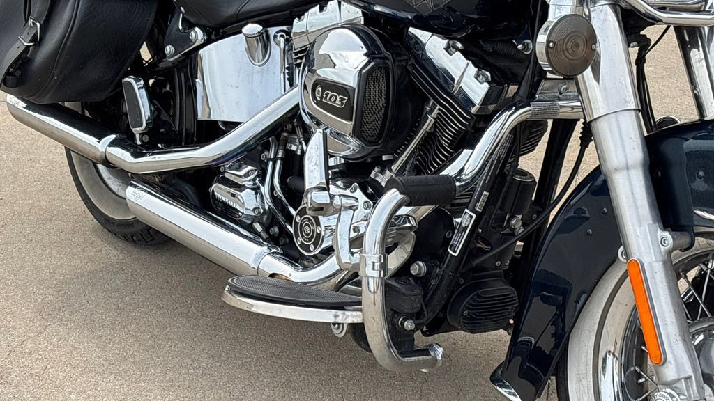The Heritage Softail® Classic drips with the nostalgia of days gone by, but that’s only half of the equation for the rider of today. The hidden suspension gives you the authentic look without the bone-shaking ride of an old Hardtail. You get the comfort of cruise control for those long stretches of pavement. A redesigned seat and redesigned leather saddlebags. And best of all, a new High-Output Twin Cam 103™ engine. We’re not about to re-invent this look. But we never stop re-inventing the ride.