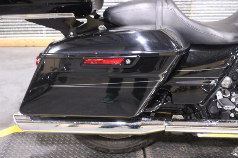 The exterior of the Road Glide Special Touring is striking, showcased in a sophisticated black color complemented by a subtle pinstripe. This gives the motorcycle a classic yet modern look, embodying the timeless appeal associated with Harley-Davidson's design. The sleek fairing and aerodynamic shape not only add to its elegance but also enhance its road performance.