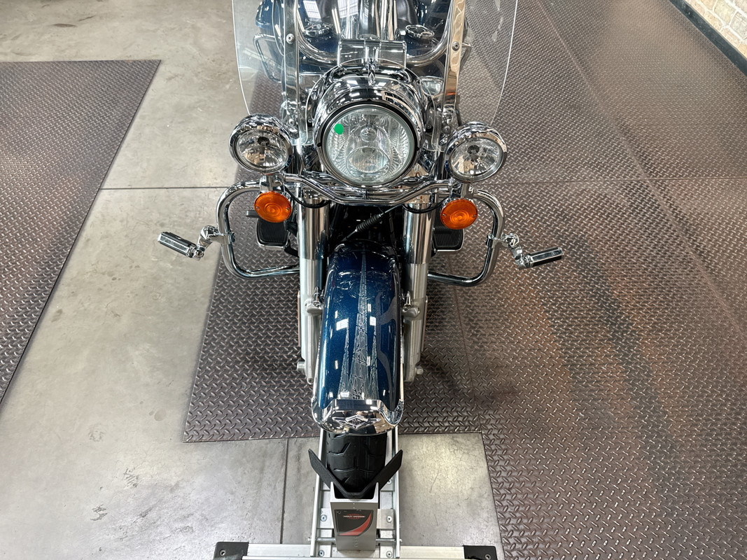 The exterior of this Harley-Davidson Touring is finished in a captivating Cosmic Blue Pearl, a color that not only stands out but also complements the bike's robust and iconic design. The paintwork is in excellent condition, reflecting the care taken by its previous owner. The Touring model is known for its long-haul capabilities, making it an ideal choice for those who love to travel and explore.