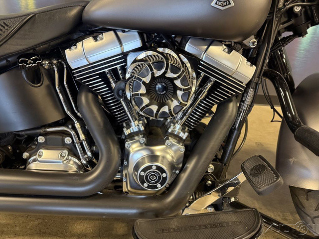 2016 Harley-Davidson® Softail® Fat Boy® LoFat, dark and strong, this down-and-dirty version of the custom icon is the big dog on the road.It raises the bar for low motorcycles.Start with a motorcycle loaded with custom detail, then slam the suspension. It makes the overall look longer, meaner and more eye-popping than ever. That’s the idea behind the Fat Bot® Lo. The low seat also puts you close to the road, to keep the riding easy. As if all that wasn’t enough, you’ve got a black headlight nacelle and solid disc wheels coated in black and drilled through with 50 caliber holes. This is the standard for low motorcycles to live up to.Features may include:Authentic StylingGet an eyeful of a Softail motorcycle and you see more than some weepy-eyed exercise in nostalgia. You’re looking at the kind of style that has the power to defy time. Honest. Uncluttered. Unaffected by the fad of the moment. There’s a good reason for this. We’ve used our long decades on the road, riding, wrenching, talking to other custom bike fanatics, to discover what works. Then we stick with it, and use it to push the boundaries of motorcycle design ever further. Take a look at the horseshoe oil tank adorning our Softail models. It’s the same one you’d see on a restored dresser from the ‘50s, or a radical Panhead chopper from the ‘70s. And you’ll find it right now on future Harley-Davidson models that still on the drawing board. Other companies may be content to imitate bits and pieces from our long history. On a Softail motorcycle every part down to the axle nut cover comes from an authentic tradition. With a genuine reason for looking the way it looks.Iconic EngineThe air-cooled 45° V-Twin engine at the heart of every Softail model is a prime example of what makes a Harley-Davidson motorcycle more satisfying than anything else. Its clean, uncluttered shape fits perfectly in the downtubes of the frame. Twist the throttle and the surge of torque hits you exactly where it counts. The knowledge of what makes an engine truly move a rider runs deep at The Motor Company, and it’s been put to particular good use to power the Softail family. We counterbalance the engine, which means we can bolt it directly to the frame. It keeps the styling tight at the center of the bike. It lets the rider feel the pulse of the V-Twin. Yet there aren’t any vibrations rattling the fillings out of your teeth. What’s good gets even better for 2016. The Softail family gets a power upgrade to the new High Output Twin Cam 103™ engine. More power is always a Harley-Davidson tradition.TechnologyThe beauty of the technology on a Softail motorcycle is that it never looks technological. That didn’t happen by accident and it doesn’t come easy, particularly when you consider that the inspiration for the family is the clean, wide-open lines of a vintage hardtail. Clutter it up with too many high tech doo-dads and you have a different machine entirely. Take a look at the anti-lock brakes now standard on many Softail models and available across the line. ABS gives you the control you want on a modern motorcycle. But our teams of industrial designers and engineers weren’t finished until the whole system had a streamlined design. The same goes for the clean look to the handlebars, thanks to a new electronic throttle system on every Softail model. With each passing year, adding a little technology to the ride looks better and better.HandlingIf you’ve never experienced a Harley-Davidson Softail motorcycle, it’s time to find out what you’ve been missing. The venerable Softail frame has logged untold millions of miles, and we’ve put every one of them to good use. The result: one of the most fun rides in all of motorcycling.