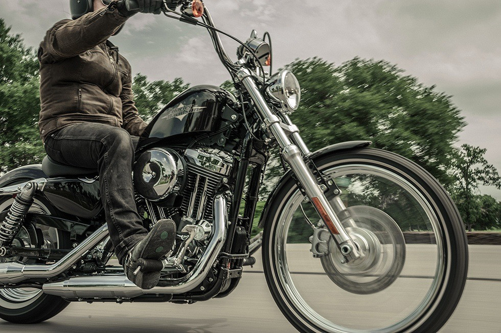 There’s no mistaking the throwback look and unruly style of the Harley-Davidson® Seventy-Two motorcycle rolling by on the street. Feet forward. Fists in the wind. Hard Candy Custom™ fat metal flake paint on a 2.1 gallon peanut tank, classic skinny whitewalls, raked front end. But, unlike the 70’s garage choppers that came before it, it has confidence inspiring front and rear brakes. And plenty more tech to make the ride better. The Seventy-Two® motorcycle. Modern day refinement. True, old school outlaw soul.