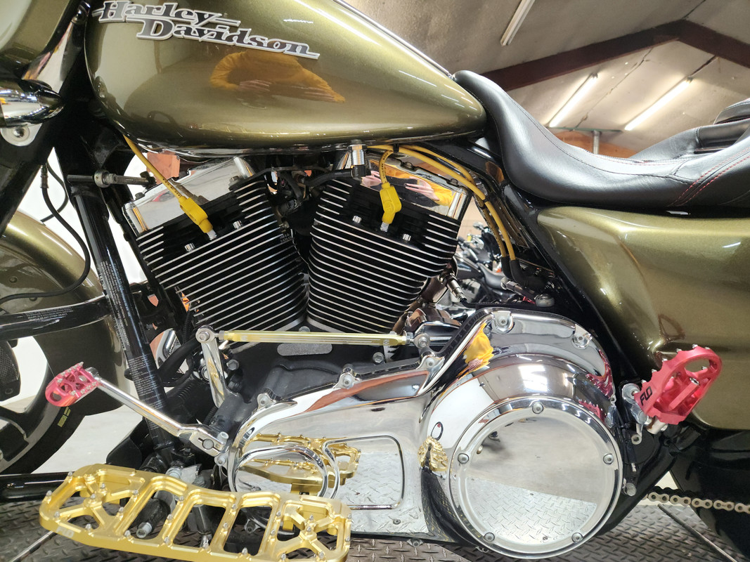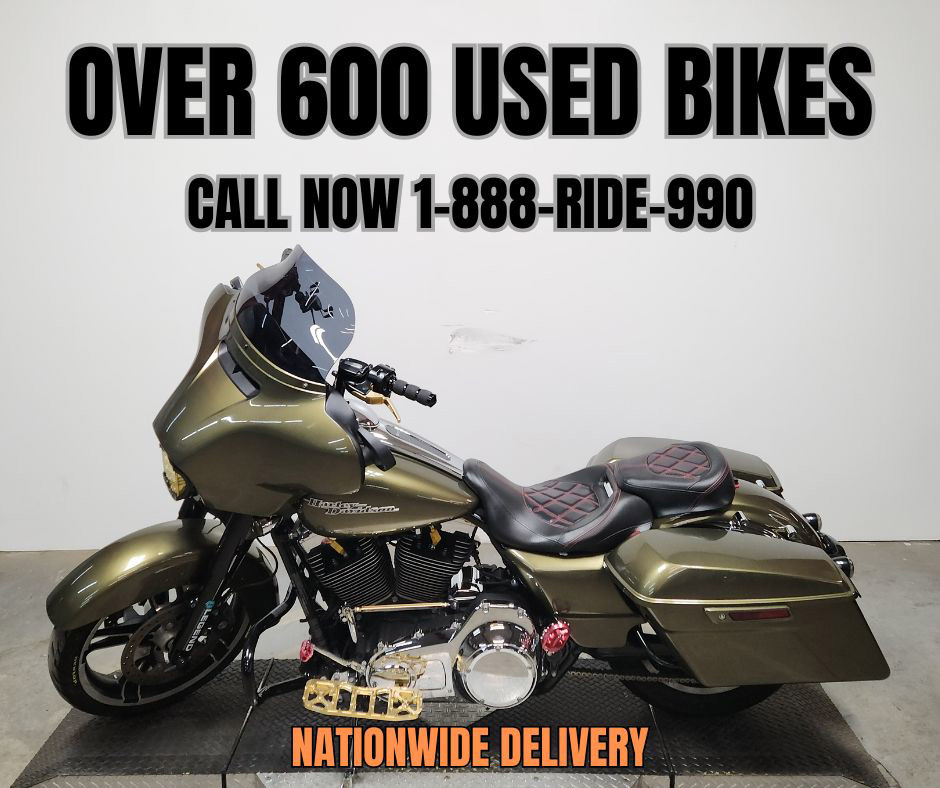USED HARLEY STREET GLIDE FOR SALE WITH ONLY 14,872 MILES, OVER $6,000 IN EXTRAS, AND HARD TO FIND COLOR "OLIVE GOLD PEARL"! TAKE A CLOSE LOOK AT THIS ONE-OF-A-KIND STREET GLIDE! LEGEND FRONT AND REAR SUSPENSION, TRASK INTAKE, FUEL MOTO JACKPOT EXHAUST, FLOW FLOOR BOARDS, FLOW LOWER CONTROLS, CHAIN DRIVE, BAJA DESIGN HEADLIGHT, CUSTOM SEAT, AND MORE! THIS ONE IS A MUST-SEE! RUN IN FRONT OF THE PACK AND LOOK GOOD DOING IT! THIS BIKE RUNS STRONG!