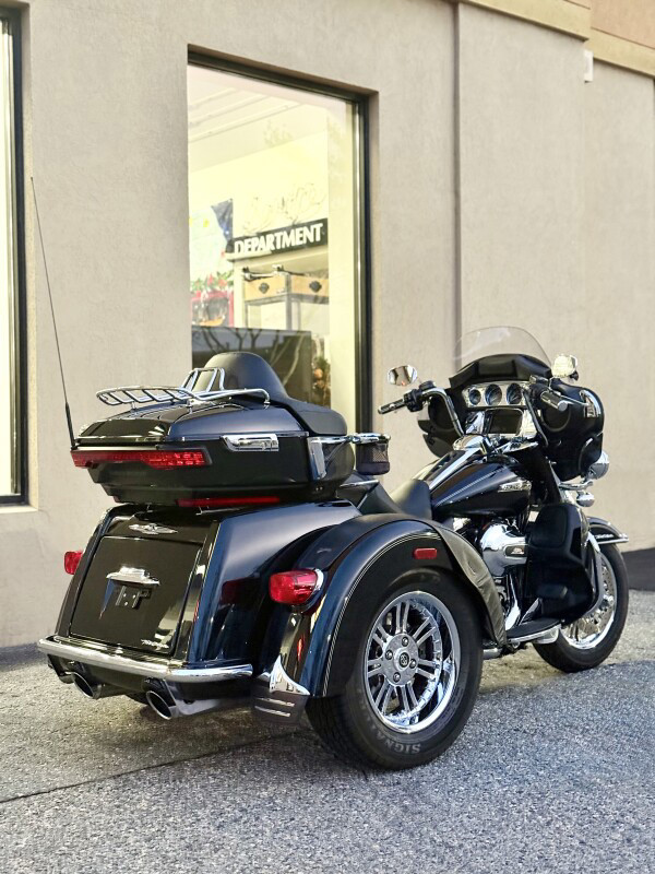 The Tri Glide Ultra model is everything you love about the Harley-Davidson touring tradition, only more. You get every Project RUSHMORE feature and improvement applied to our three-wheel frame design. You also get the confidence of front to rear linked brakes. It all adds up to better miles and more comfort than a vibrating motel room mattress. Get into the middle of nowhere on this one and you won’t be coming back anytime soon.