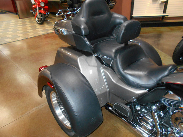 2016 Harley-Davidson® Tri Glide® UltraHow much motorcycle can you fit on three wheels? One look at the Tri Glide® Ultra motorcycle and you'll have your answer.There’s more than an added wheel at work here.The Tri Glide® Ultra model is everything you love about the Harley-Davidson® touring tradition, only more. You get every Project RUSHMORE feature and improvement applied to our three-wheel frame design. You also get the confidence of front to rear linked brakes. Get into the middle of nowhere on this one and you won’t be coming back anytime soon.Features may include:ControlProject RUSHMORE started out as a way to re-think the venerable Harley-Davidson Touring motorcycle from fender tip to fender tip. It’s turned into a never-ending quest. Each year the going just gets better for the rider who points one of our bikes down the highway.InfotainmentWhen we go to work on the infotainment system for a Harley-Davidson Touring motorcycle we follow one simple principle. If you’re going to live in the saddle of a top-end touring bike, you deserve better sound than most people have in their living rooms.FeelStarting with the days when early riders bolted plastic windshields to their machines and began crisscrossing the country, the Harley-Davidson Touring motorcycle has already gone places no one could have imagined. We began Project RUSHMORE to discover what comes next. When it came to rider comfort, that meant getting in the saddle and putting in miles.StyleWith a name like Project RUSHMORE, you know we were aiming high when we set out to rethink what riders experience on our Touring machines. These weren’t just motorcycles. They’re part of the American landscape. So we set about perfecting the way they work, feel and look the only way we could. By riding. Millions of miles. Countless hours. More grueling road tests than any sane person would ever want to endure.