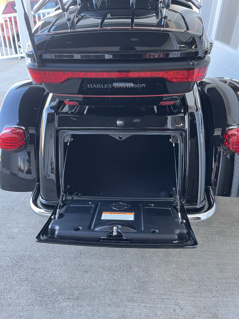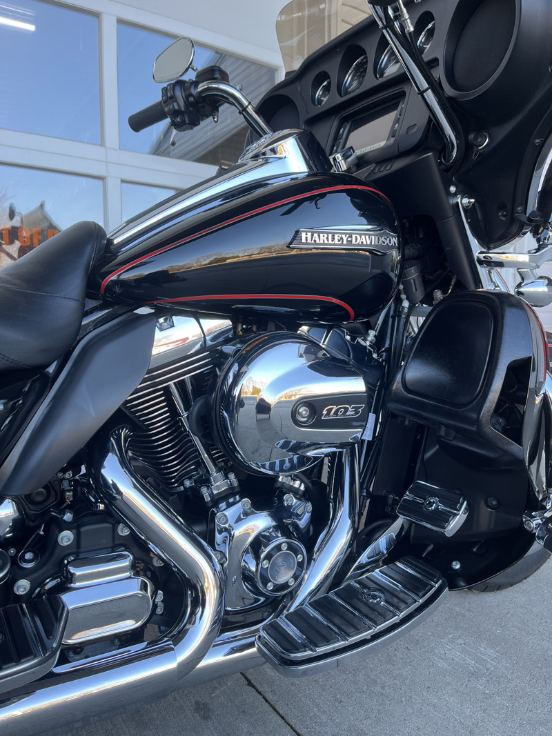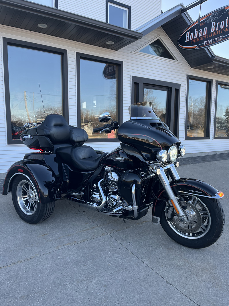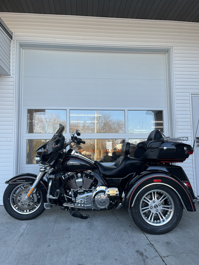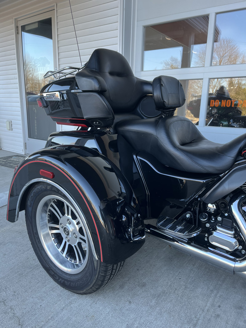 Up for sale is the 2016 Harley-Davidson FLHTCUTG Tri Glide Ultra in Vivid Black with a Red Pin Stripe, showing 62,095 miles. This trike has been regularly serviced in our service department since new, reflecting consistent care and maintenance throughout its life. At 30k miles, the cam chest was upgraded with S&S Cycle MR103 cams along with a Screamin’ Eagle cam plate and pump. At 45k miles, a Legends AXEO Tri-Glide Front Suspension System was installed, enhancing ride quality and handling. A complete service has just been completed, including fresh oils along with brake, clutch, and coolant flushes, making this Tri Glide fully road-ready for its next owner. If you’re looking for a well-maintained, performance-upgraded Tri Glide Ultra with documented service history, this is an excellent opportunity. All of our motorcycles go through a 33-point inspection and have all oils changed. Contact us today to schedule a test ride and make it yours.