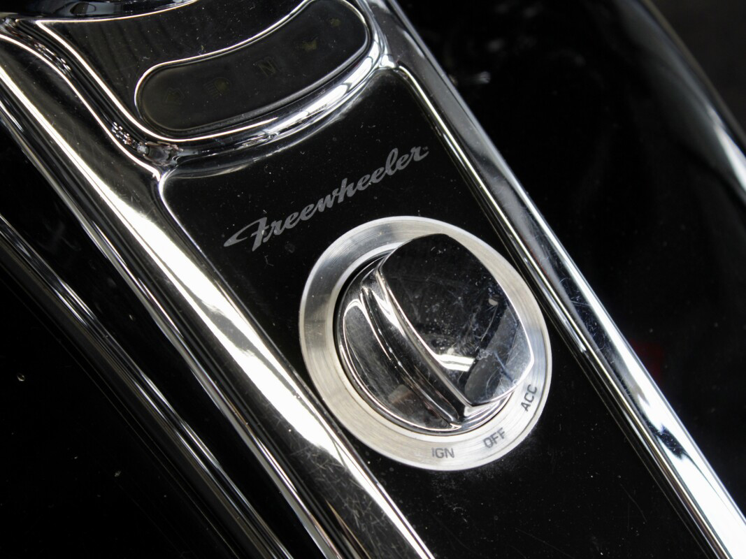 The Freewheeler puts stripped down, custom style into an easy handling frame that lets you roll withthe confidence three wheels gives to a rider. You get classic cruiser lines and styling details, like bobtailrear fenders, slash cut pipes, chrome headlight nacelle, 12-inch mini ape hangers and Enforcer aluminum wheels. You also get enough cargo space to hold two full-face helmets. The acceleration is instant thanks to the low-end torque of the all-new Milwaukee-Eight 107 engine. And the 49mm front forks and adjustable rear suspension make the ride smooth. They say good things come in threes, and Freewheeler is the proof.