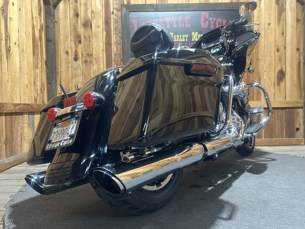 * Harley OEM Vivid Black Paintjob * Vance and Hines CHrome Dual Exhaust * 4 Point DOcking Hardware * Ohins Rear Suspension * 107 Cubic Inch Harley Milwaukee 8 Motor * Chrome Saddlebag Guards * Chrome Engine Guard * Dual Disc Front Brakes * LED Front Turn Signals
