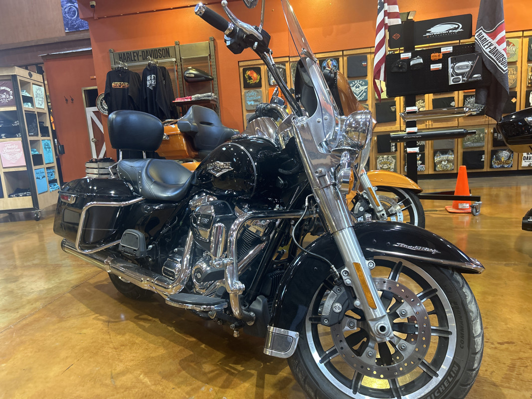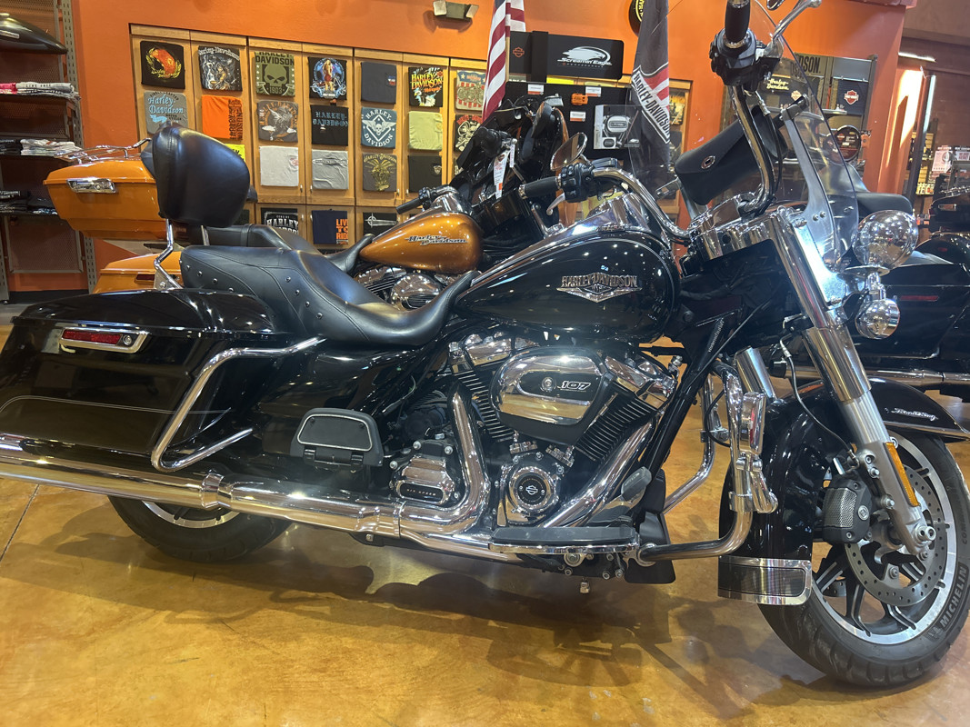 The Road King® is where stripped down, nostalgic style meets the performance and versatility of a modern Harley-Davidson® touring machine. The Hiawatha headlamp and nacelle was born in the 1960’s, when chrome ruled the streets. But the power of the all-new Milwaukee Eight™ 107 engine brings it all into the here and now in a hurry. The all-new dual bending valve front suspension and rear emulsion shocks put you in control for a plush ride. You also get cast aluminum impeller wheels and one-touch opening saddlebags. This is the timeless classic built for today.
