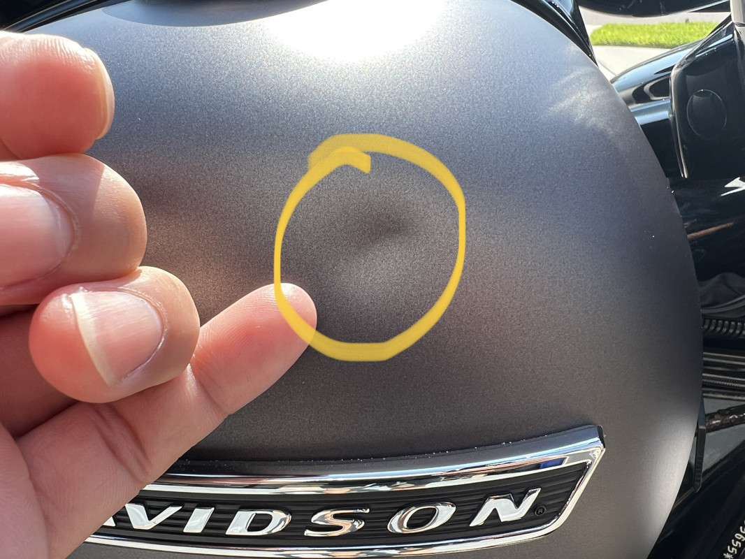Dime size dent on the tank which is pictured