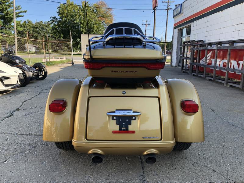 USED HARLEY TRI GLIDE FOR SALE IN HARD TO FIND COLOR " BLACK HILLS GOLD & BLACK QUARTZ" WITH ONLY 14,226 MILES! THIS IS ONE SHARP HARLEY TRI GLIDE! CLEAN, CLEAN, CLEAN! NO DENTS, NO DINGS, NO SCRATCHES! ALL STOCK, NO MODIFICATIONS, HIGHWAY PEGS, BLACKOUT WINDSCREEN, CELL PHONE HOLDER, OVERSIZED L.E.D SCREEN, BLUETOOTH STEREO, NAVIGATION SYSTEM, SECURITY SYSTEM, CRUISE CONTROL, AND MORE! JUST SERVICED AT THE DEALERSHIP, INSPECTED, ALL FLUIDS CHANGED, RUNS STRONG, EVERYTHING WORKS, NEEDS NOTHING! CUY WITH CONFIDENCE! SOLD NEW FOR $38,000, BLUEBOOK IS $26,000, THIS ONE IS A DEAL!