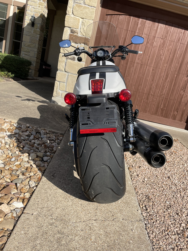 Original owner in absolutely perfect condition. Bike is 1 of only 54 units built domestically (not including CA) in Crushed Ice Denim for last model year 2017. Build date Aug 17, 2016, is late in the model year so perhaps one of the last VRODS produced. Go to You Tube Birth of the VROD for a great summary of this classic. 0-60 3.6 and 0-100 low 7s is the truth. 700 mile road trip was very comfortable. Being the last model year, this will become a vintage classic if not there now. You will get comments like ‘What is that’. ‘Is that a Harley?’ . ‘That sound is something else’. It will turn heads and attract a lot of attention. Not many like this one.
