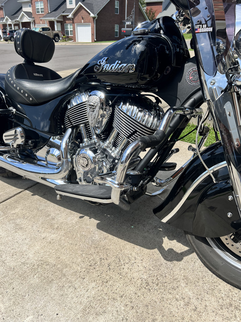 50,000 miles, Indian Stage 1 round air cleaner, Rinehart exhaust, Indian Stage 2 cams, Tuner.Indian Handlebar bag, Freedom 14” tinted windshield, Cruise Control,Led headlight and passing lamps. Ultimate mid-rider seat with removable driver backrest, removable passenger backrest with luggage rack. Custom Dynamics rear lights, custom horn cover. Removable hard lowers, tinted fork wind deflectors.Needs nothing, ready to ride. Leather jacket, vest and chaps included. Clear title. All service done by Music City Indian in Nashville TN. $12,500.00 obo no trades.