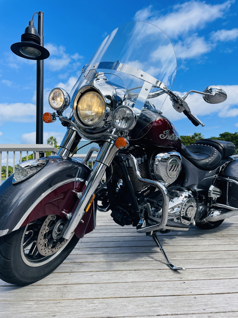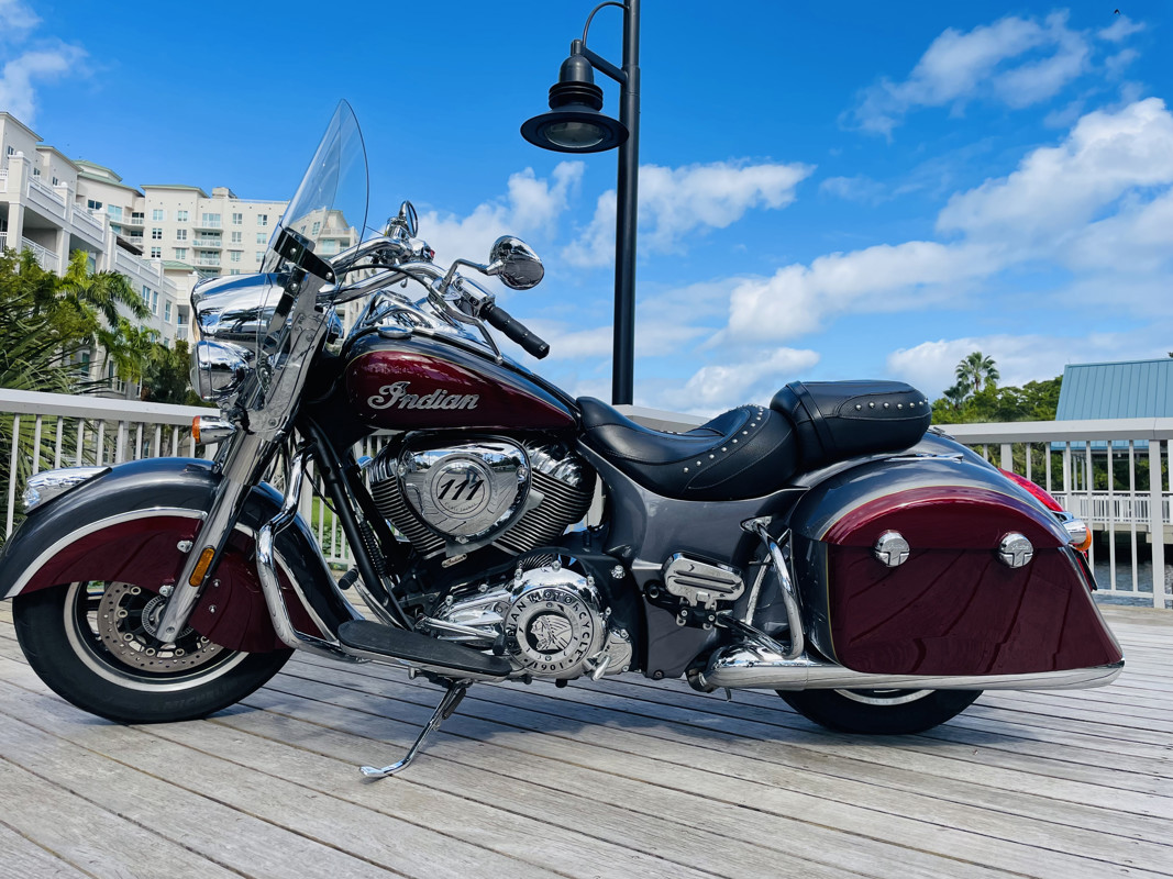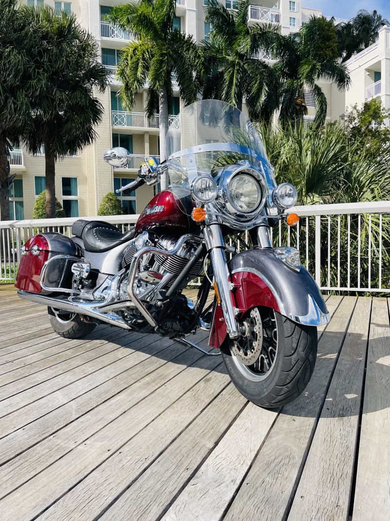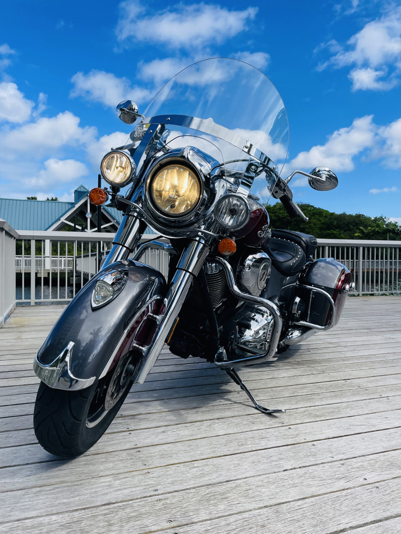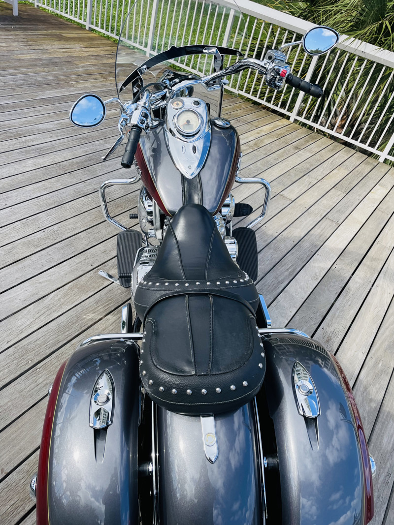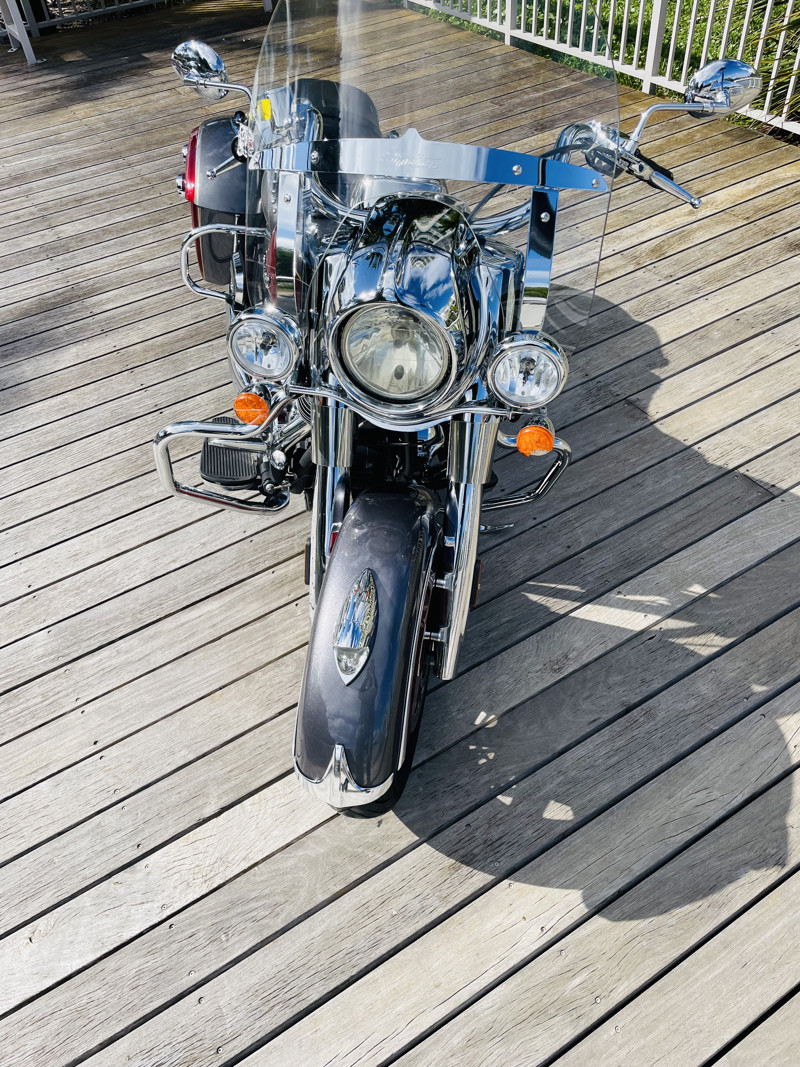 The “Springfield” is the cross between the cruiser “Chief” and the touring “Chieftain”. While it does not have the full front fairing of the Chieftain it does offer central locking hard saddle bags and the windshield as a standard equipment making it a perfect short touring bike as well as a nice riding lighter cruiser.