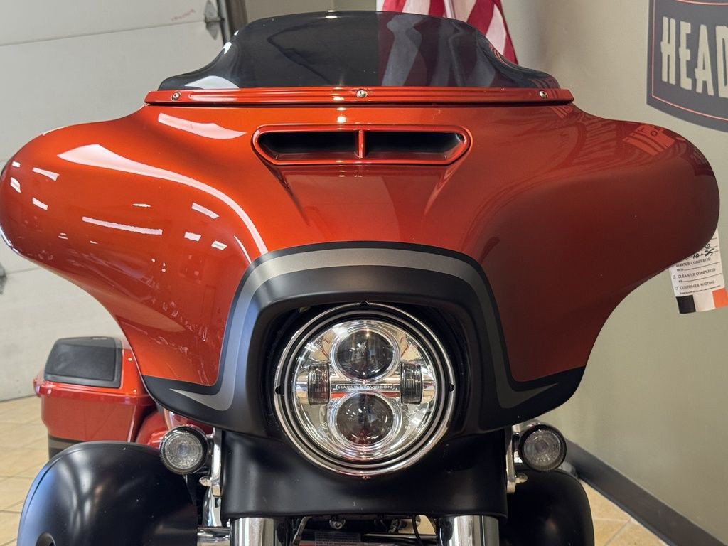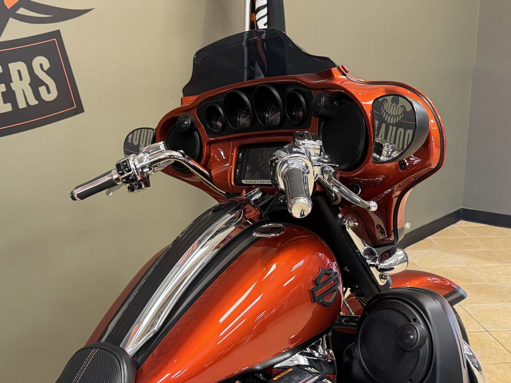 The most powerful V-Twin engine ever offered from the factory, and only available in CVO™. Features color accented Rocker Box Lowers with deep orange finish.