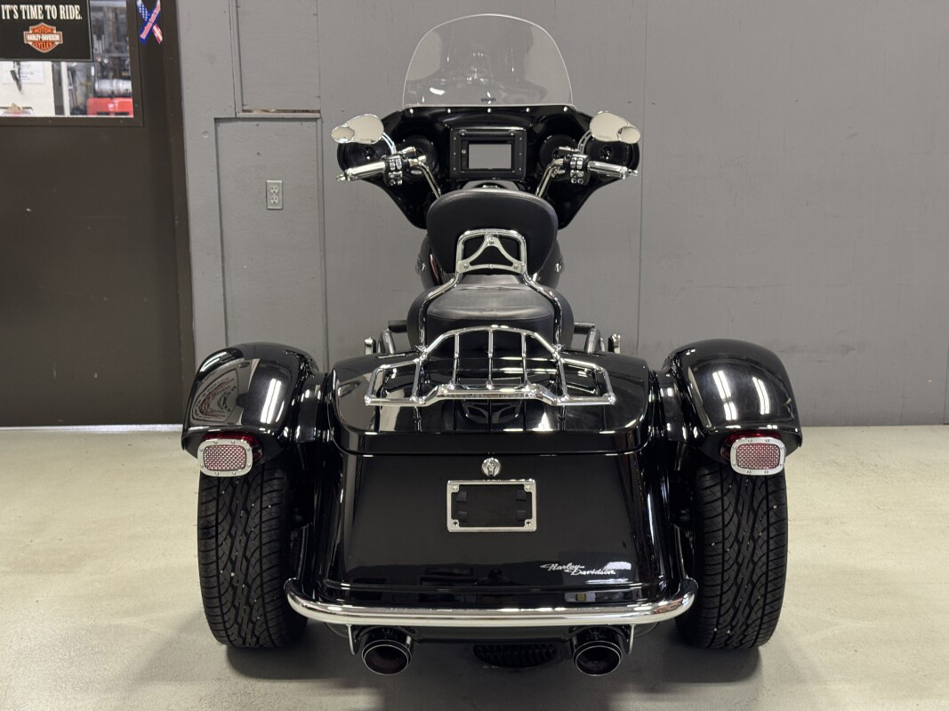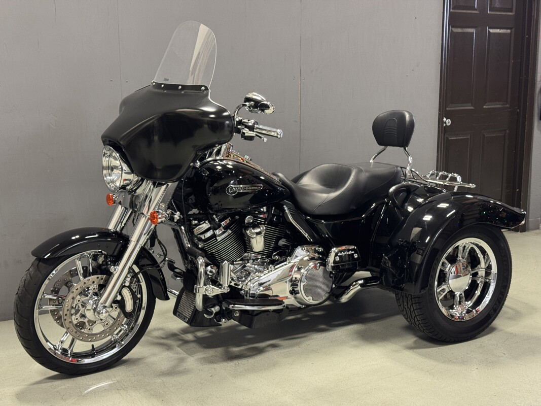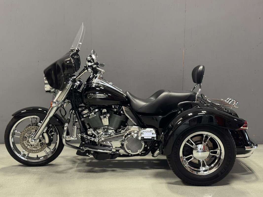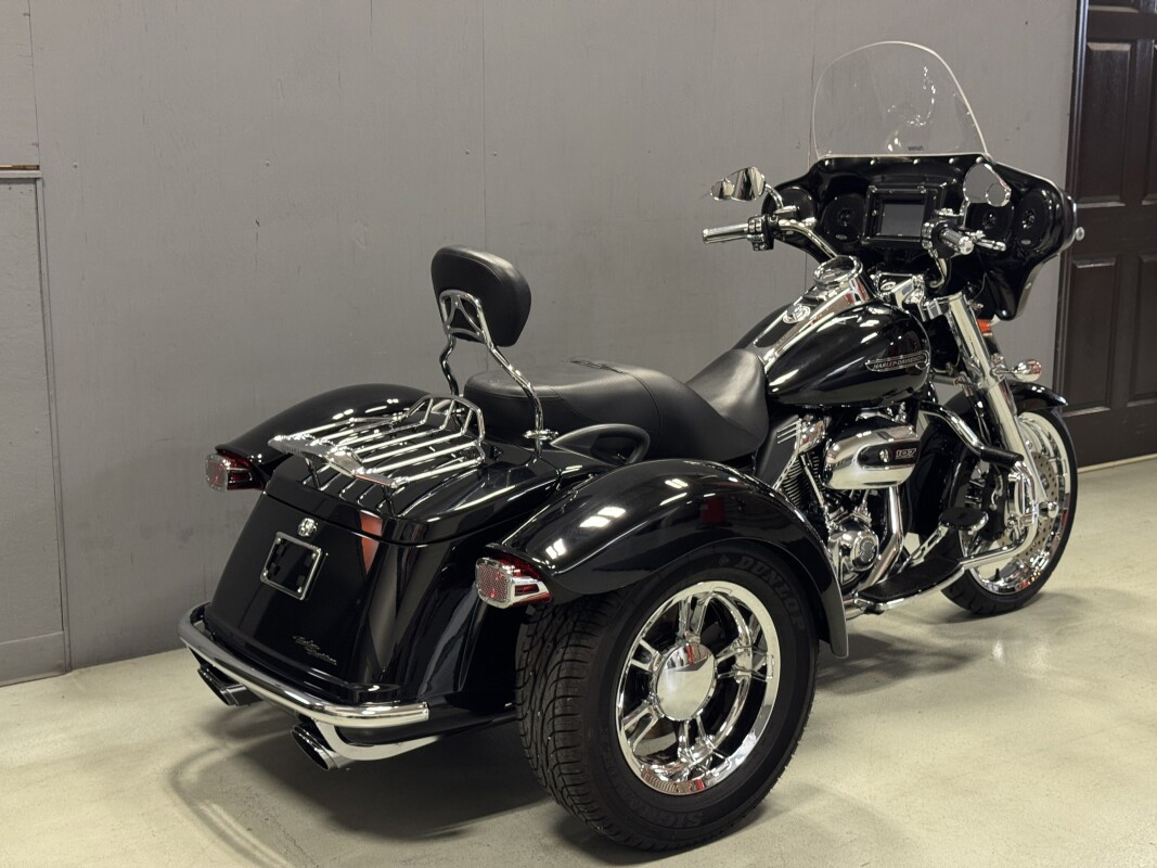 The Freewheeler model puts stripped-down custom style into an easy handling frame that lets you roll with the confidence three wheels gives to a rider. You get classic cruiser lines and styling details, like bobtail rear fenders, slash cut pipes, a chrome headlight nacelle, 12-inch mini-ape hangers and Enforcer aluminum wheels. You also get enough cargo space to hold two full-face helmets plus your extra gear. The acceleration is instant, thanks to the low-end torque of the Milwaukee-Eight 107 engine. And the 49mm front forks and adjustable rear suspension make the ride smooth. They say good things come in threes, and Freewheeler is the proof.