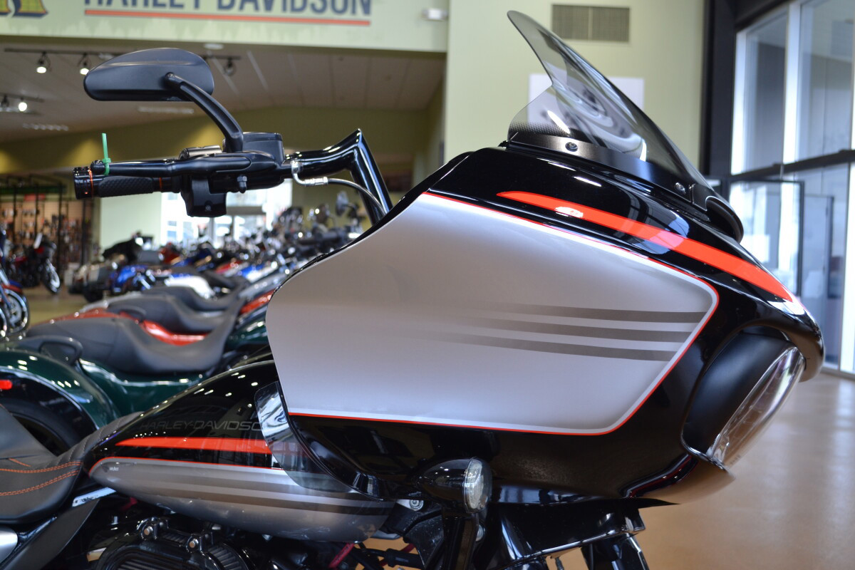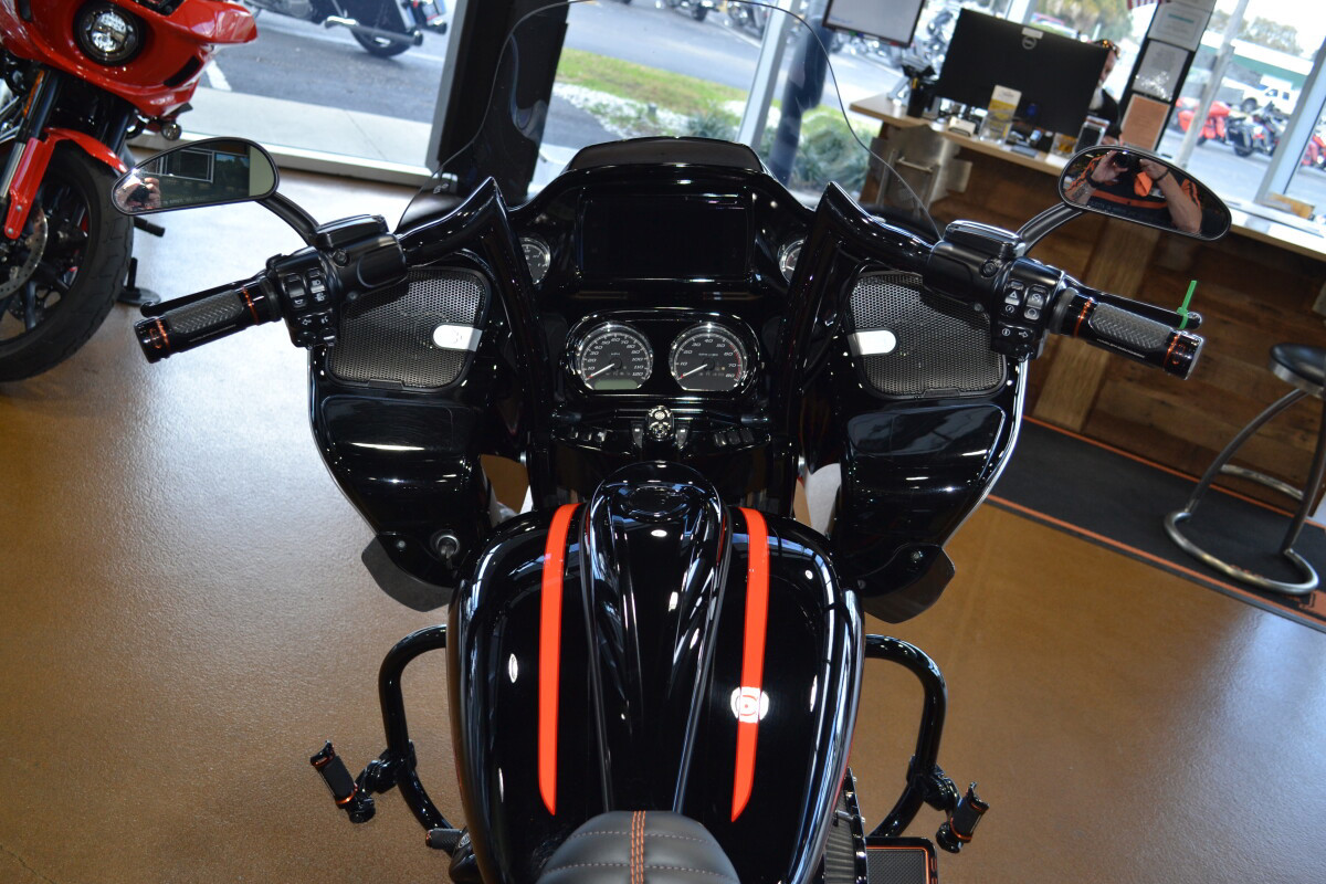 This one’s for those who want to cut a wider swath. The aggressive looks and ride of the Road Glide Special motorcycle take our most road-devouring machine to an even darker place. Note the blacked-out finishes on handlebars, . Right in the middle sits the thrill-inducing torque of the blacked-out Milwaukee-Eight 107 V-Twin. It’s also loaded with premium features like 19” (483 mm) front and 18” (457 mm) rear Talon wheels, stretched saddlebags, a painted inner fairing and a BOOM! Box 6.5GT Touchscreen Infotainment System. The ride is premium too, thanks to its responsive suspension and Reflex linked Brembo brakes. Fire it up and part the crowd.