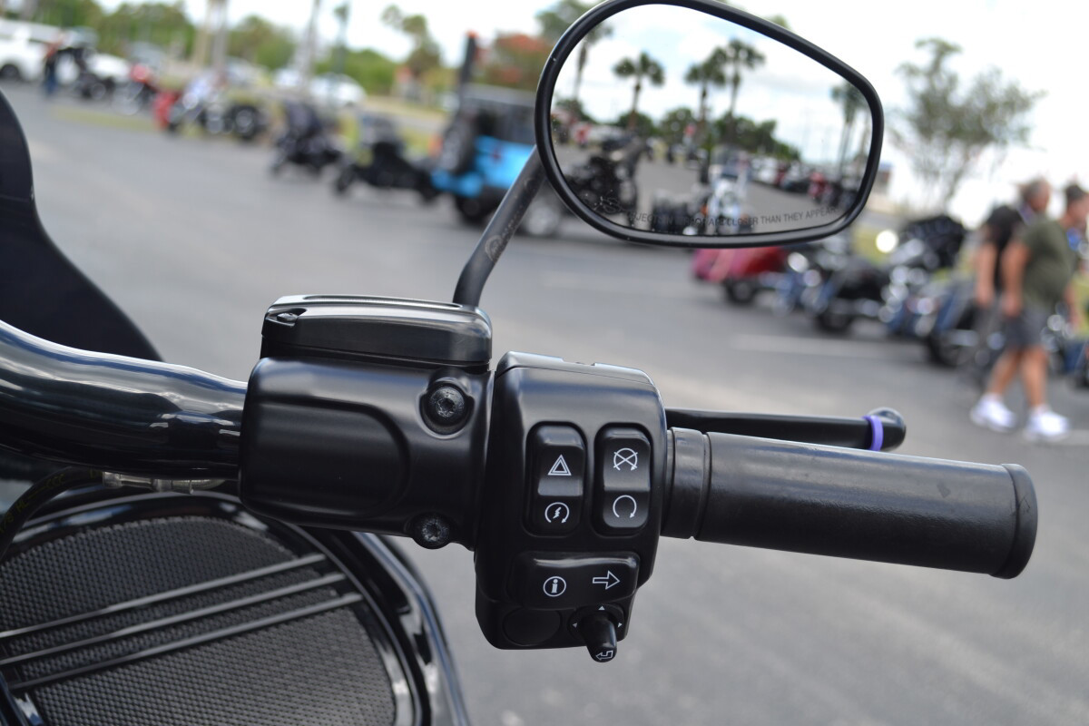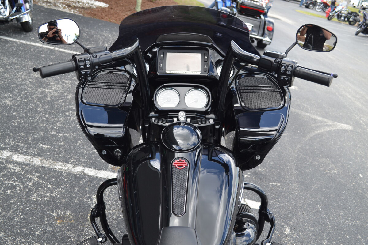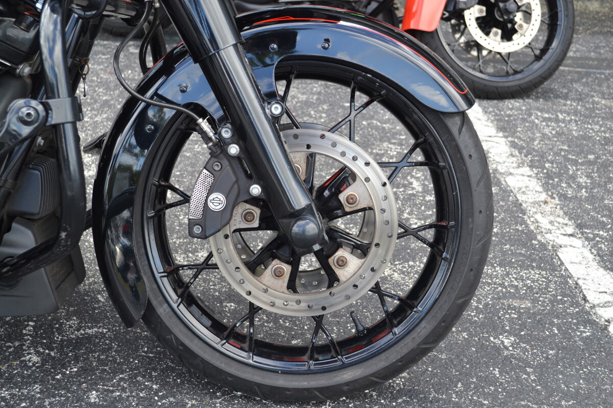 This one’s for those who want to cut a wider swath. The aggressive looks and ride of the Road Glide Special motorcycle take our most road-devouring machine to an even darker place. Note the blacked-out finishes on handlebars, . Right in the middle sits the thrill-inducing torque of the blacked-out Milwaukee-Eight 107 V-Twin. It’s also loaded with premium features like 19” (483 mm) front and 18” (457 mm) rear Talon wheels, stretched saddlebags, a painted inner fairing and a BOOM! Box 6.5GT Touchscreen Infotainment System. The ride is premium too, thanks to its responsive suspension and Reflex linked Brembo brakes. Fire it up and part the crowd.