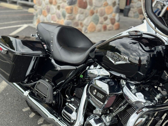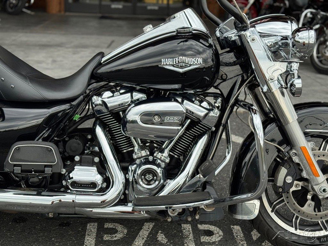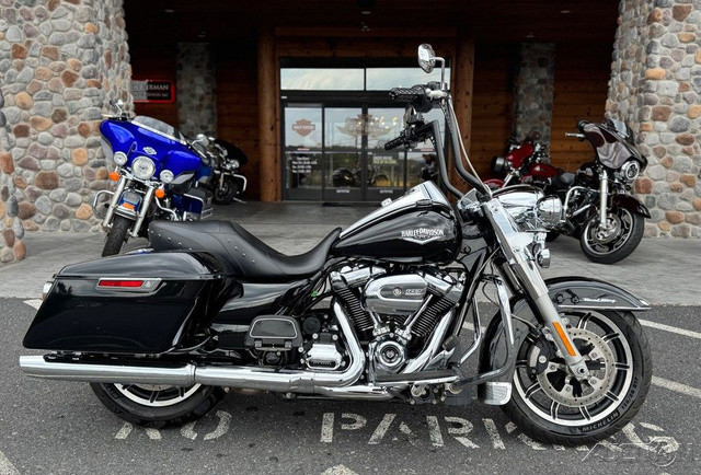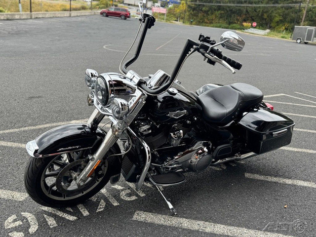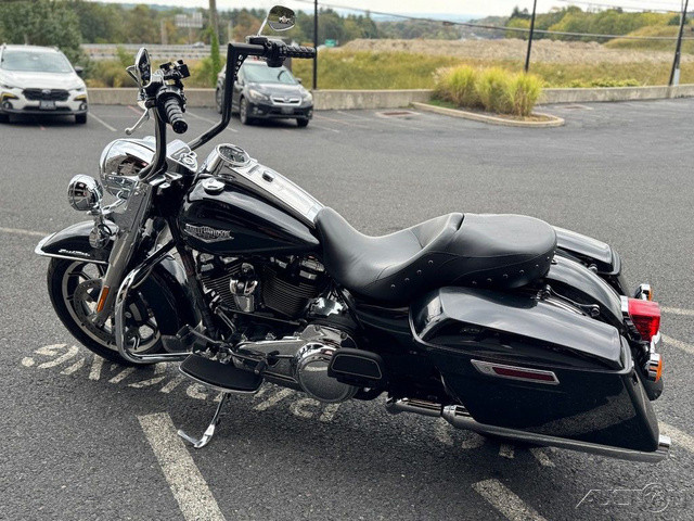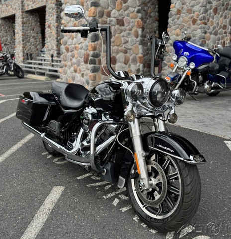 2018 Harley-Davidson® Road King®This is where stripped down, nostalgic style meets the performance and versatility of a modern Harley-Davidson® touring machine.Features may include:Hiawatha Headlamp and NacelleBorn in the ‘60s, when chrome ruled the streets. Big and commanding, it’s built with the latest in materials and technology for a longer distance high beam and wider low beam.Milwaukee-Eight® V-Twin Engine A powerful, smooth-running engine with crisp throttle response and a pure, soul-satisfying rumble. Responsive Suspension High-performing front and rear suspension, with easily hand-adjustable rear shocks, put you in control of a plush ride.Cast Aluminum Impeller® WheelsA 17-inch cast aluminum, 10-spoke Impeller® wheel in the front, and a 16-inch Impeller® to match in the back.One-Touch Opening SaddlebagsTight on the outside, roomy on the inside. The hinges are simple and clean and the lids open with one touch of one hand.Reflex™ Linked Brembo® Brakes with optional ABSThe front and rear brakes are electronically linked to provide exactly the right amount of brake to each tire no matter the road condition. No matter how good you are, this will make you a better rider.